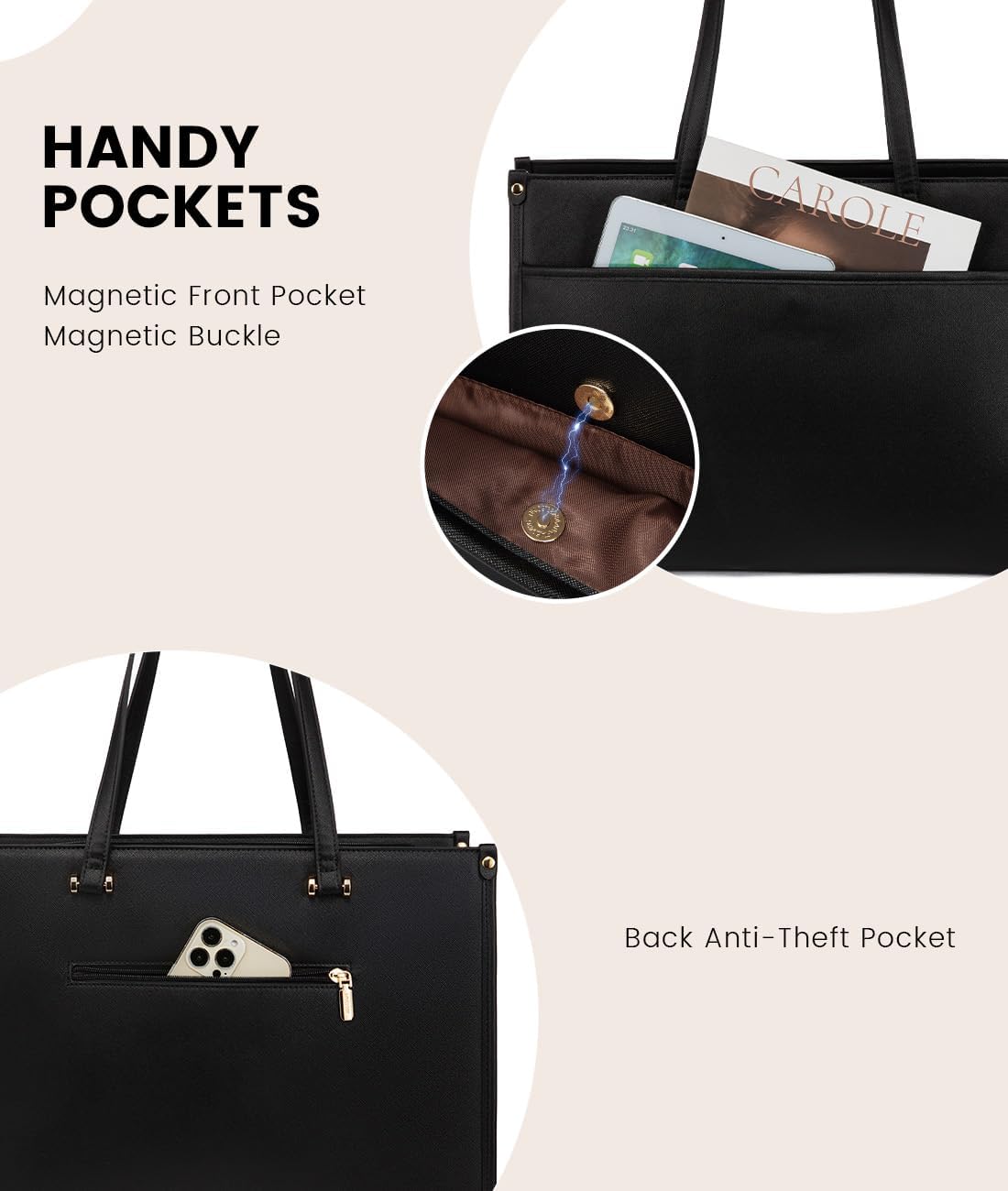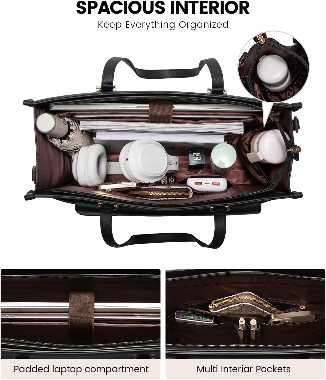 Multi-Pocket Work Bag for Women: Designed with 12 pockets, including a separate padded compartment that can accommodate a laptop(up to 17.3") and tablet, and can also store A4 files, binders, pens and other daily office supplies, this women's briefcase laptop bag ensures you are always prepared. The generous capacity accommodates a 40 oz water bottle, making it a perfect companion for work, travel, or any day on the go