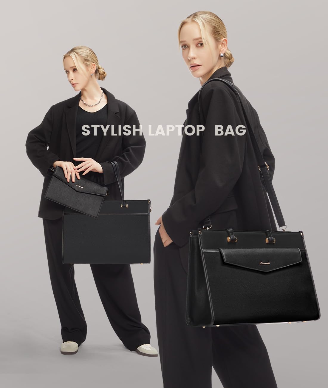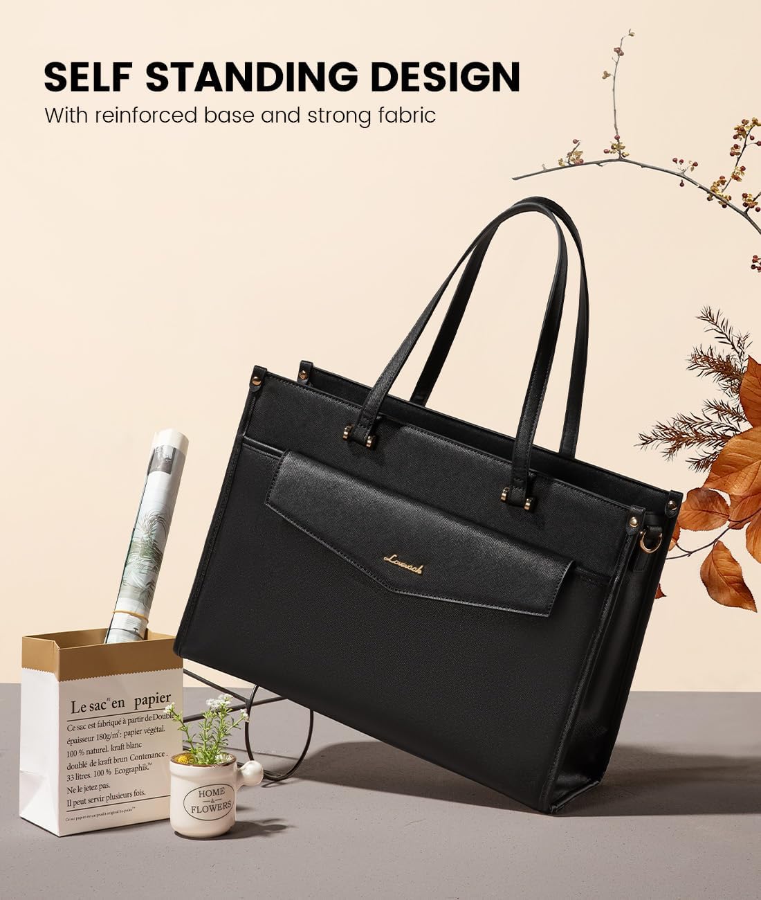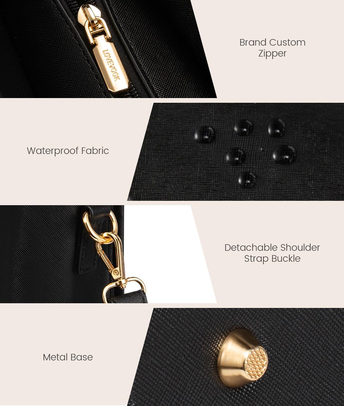 Professional Chic Laptop Tote Bag: Our laptop bag for women measures 17.5*6.5*12.5 inches, weighs only 3.3 pounds, and can stand upright on its own due to its superior support structure. Constructed with premium crosshatch textured PU leather and reinforced with high-density nylon lining, the work tote bags for women is not only tear-resistant but also waterproof and easy to clean, blending durability with sleek sophistication