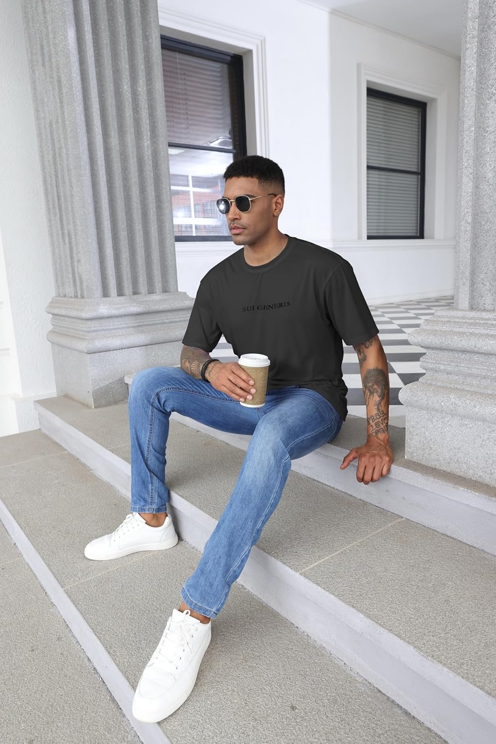 [Design]: The men's crew neck solid color T-shirt, simple and fashionable. Stamped on the chest is the Latin word "SUI GENERIS," which translates as unique. Comfortable and classic short sleeves tshirts increase the sense of fashion while maintaining convenience.
