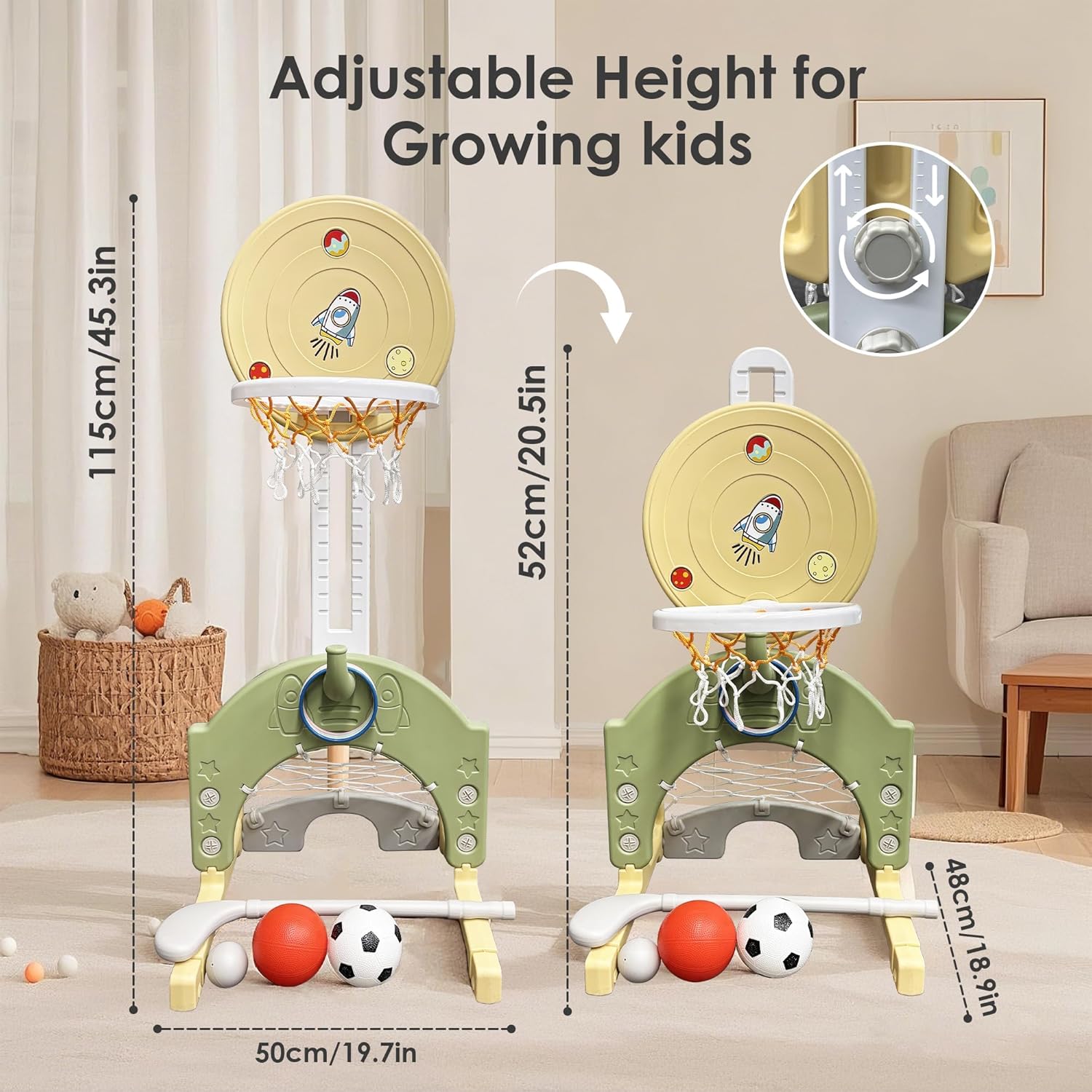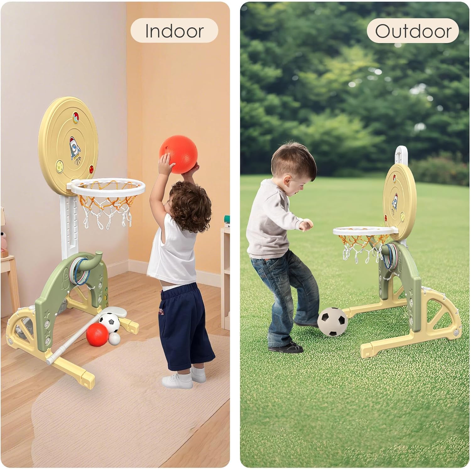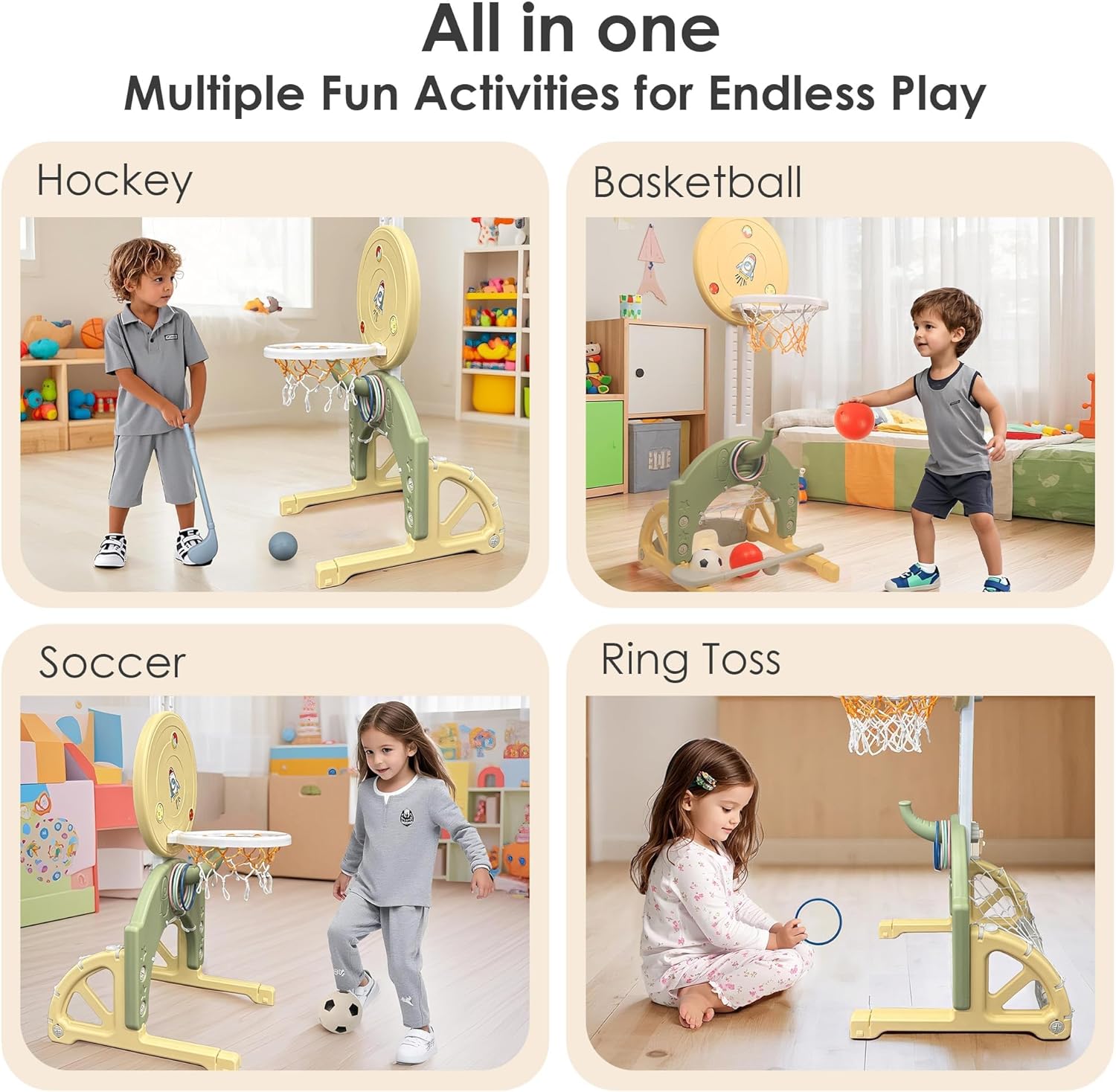 Versatile 4-in-1 Sports Center: This toddler basketball hoop is perfect for basketball, soccer, hockey, and ring toss, helping kids improve their fitness, balance, and coordination while building confidence