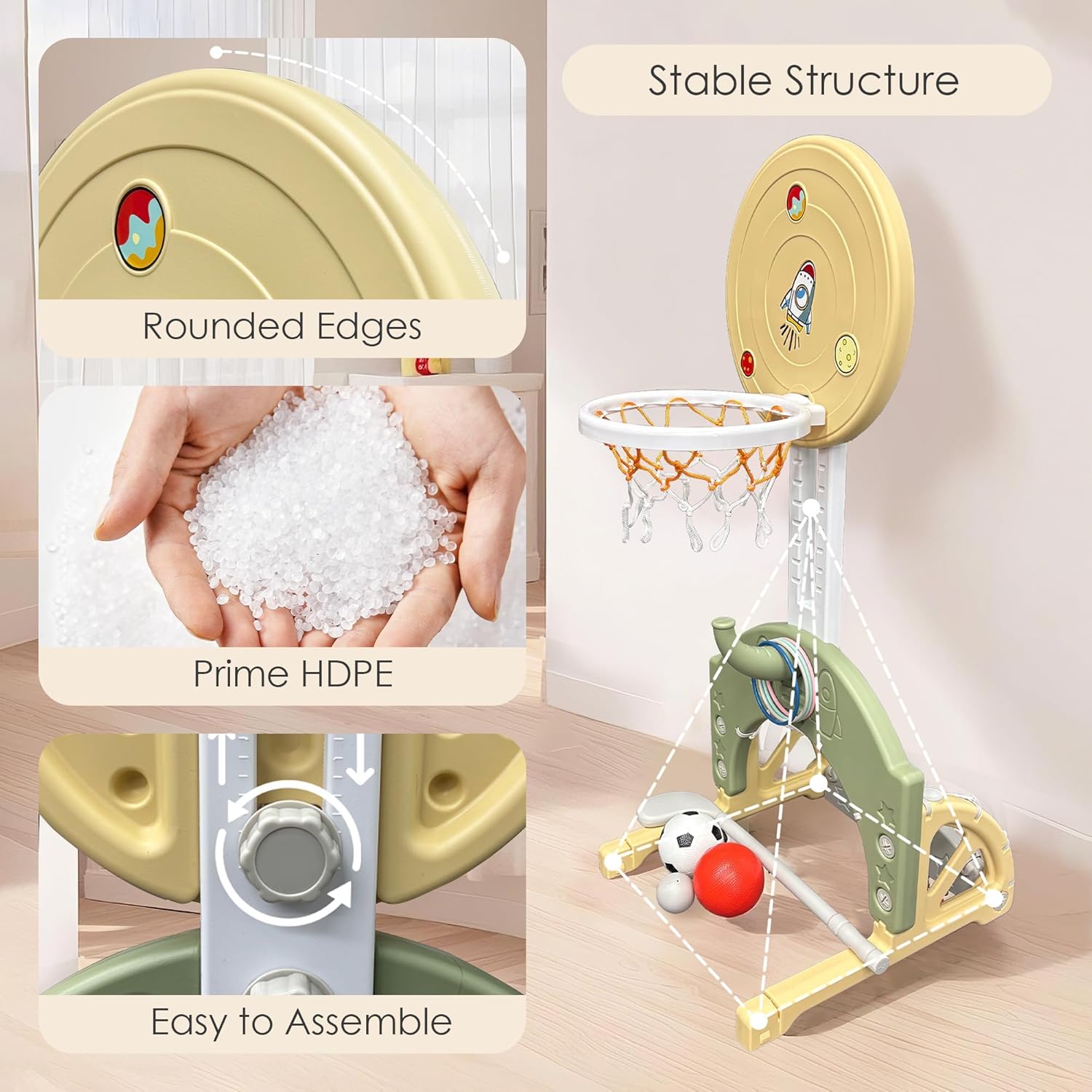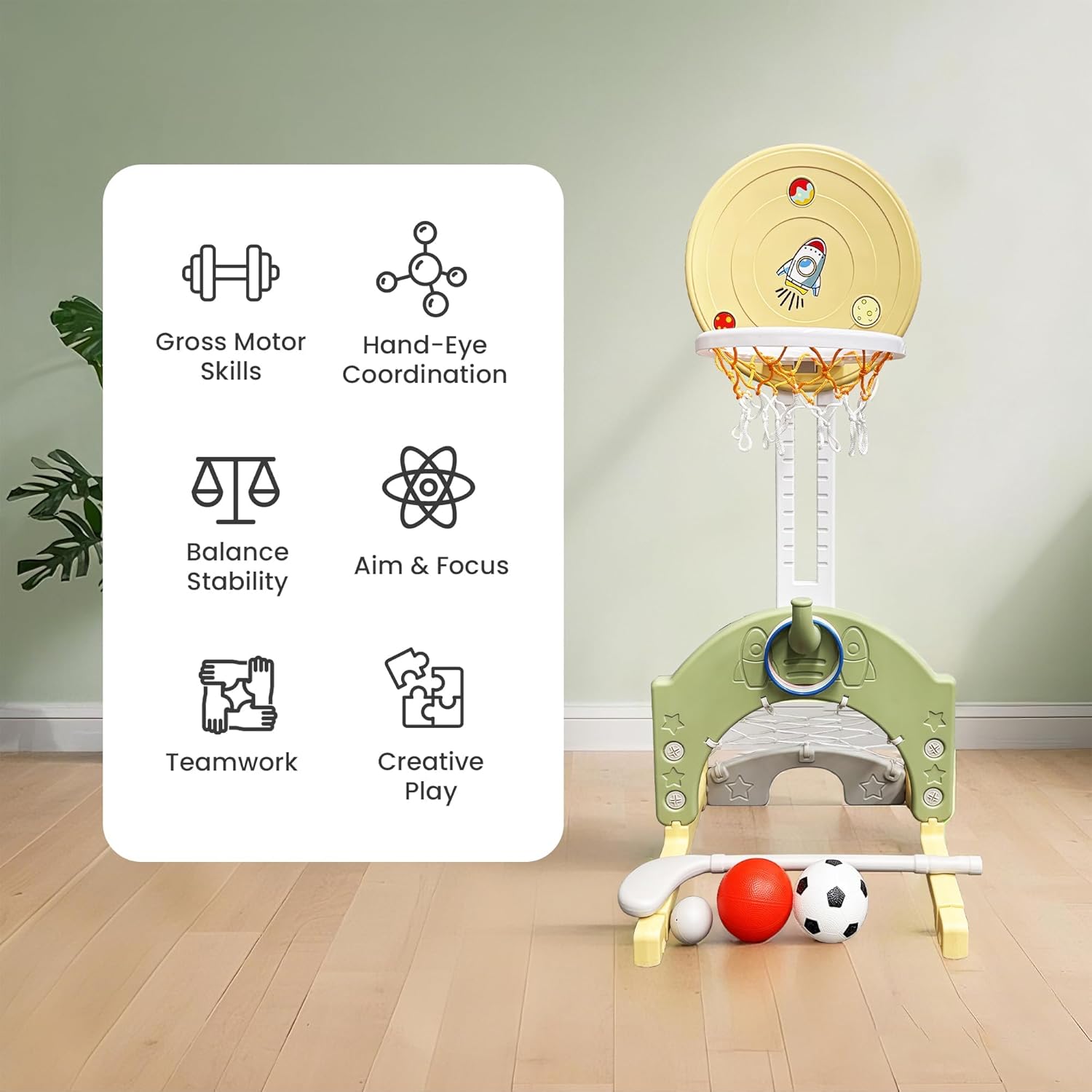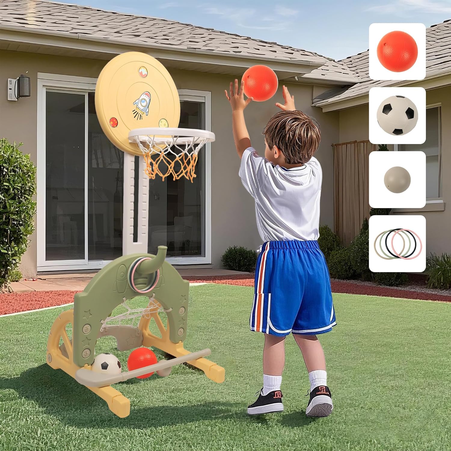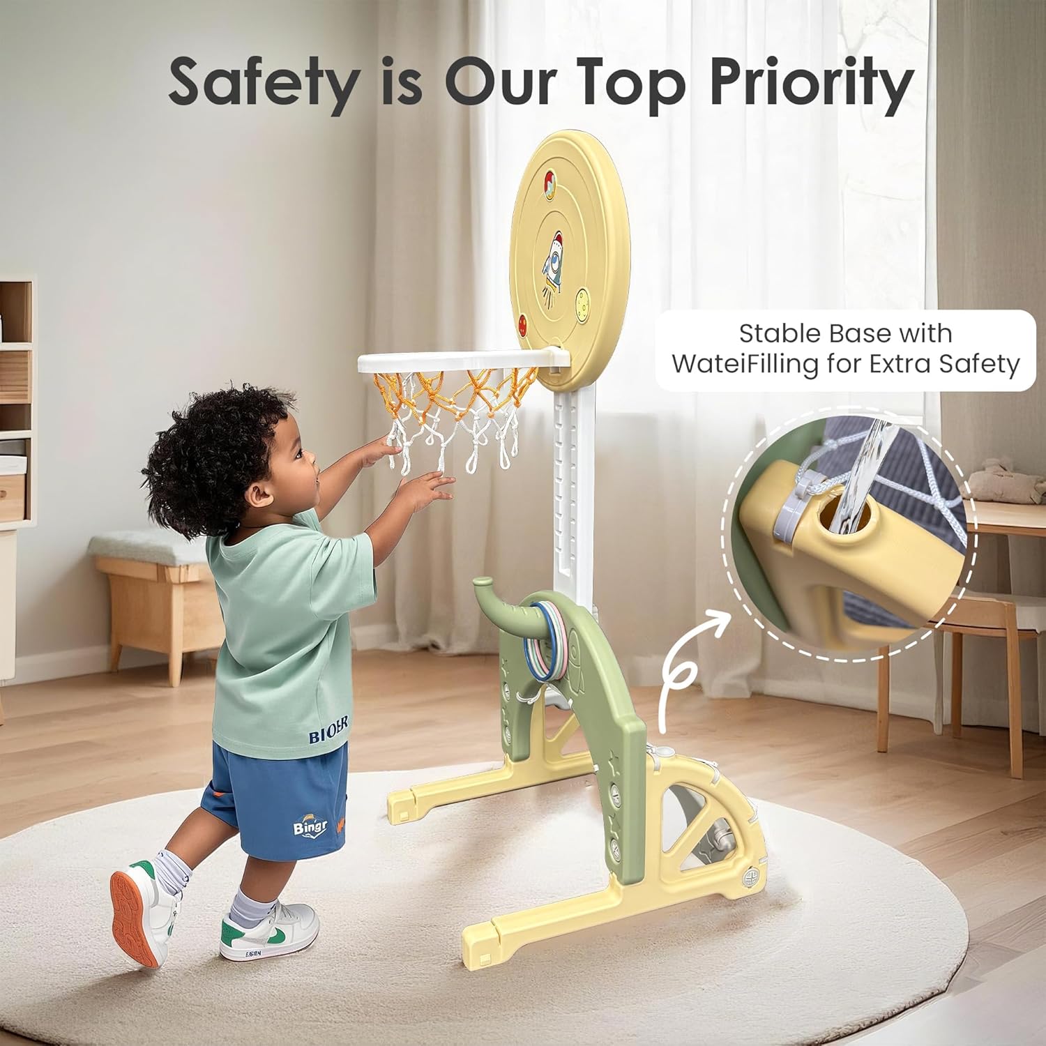 Versatile 4-in-1 Sports Center: This toddler basketball hoop is perfect for basketball, soccer, hockey, and ring toss, helping kids improve their fitness, balance, and coordination while building confidence