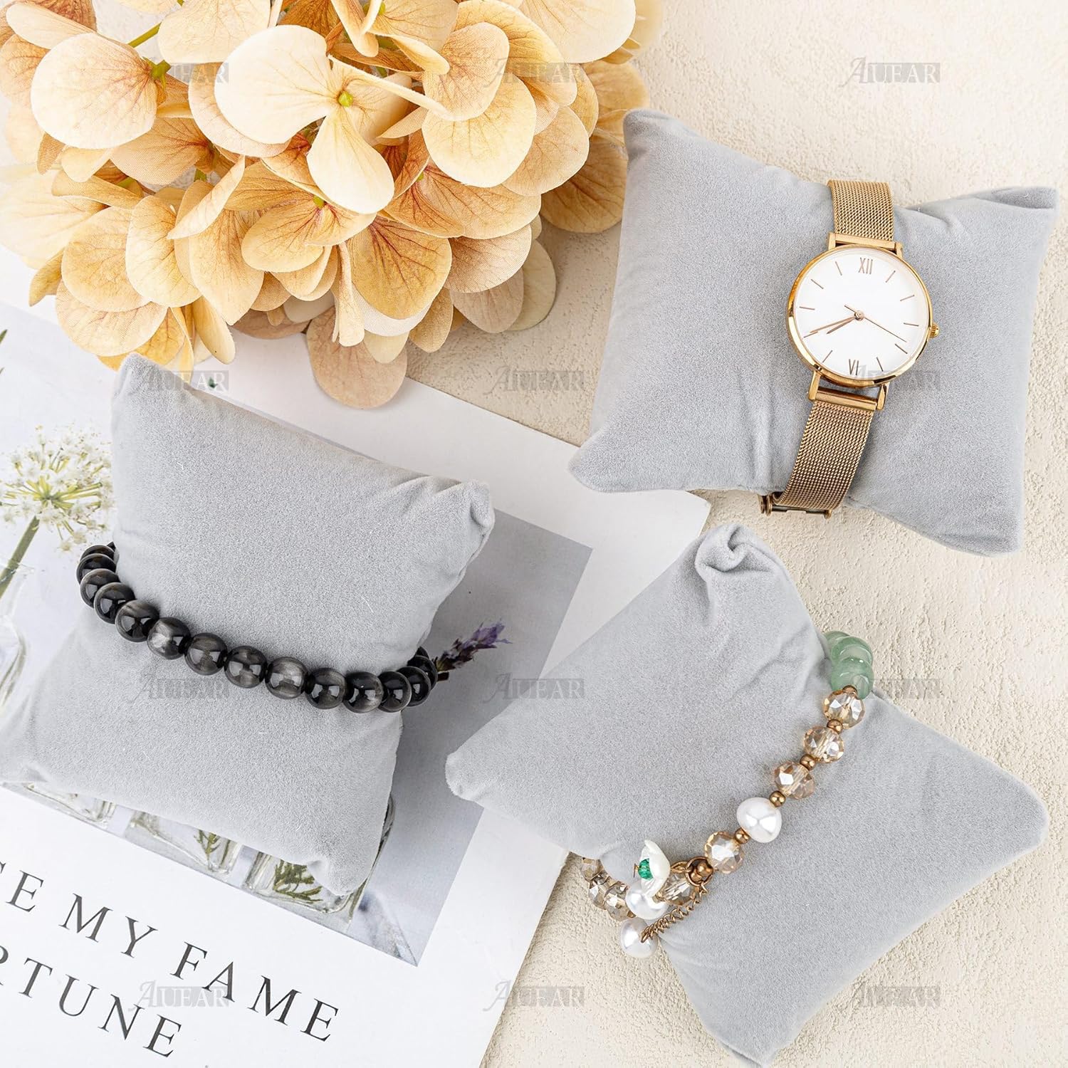 AUEAR, 10 Pieces Grey Velvet Watch Pillows Bracelet Bangle Jewelry Display Pillow for Gift Box