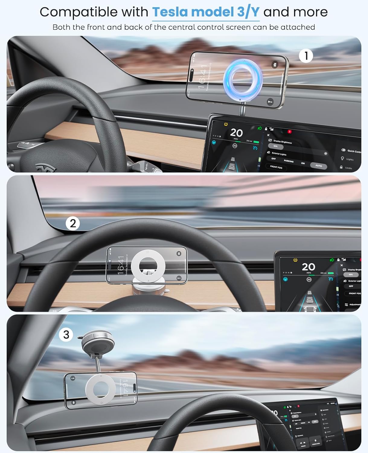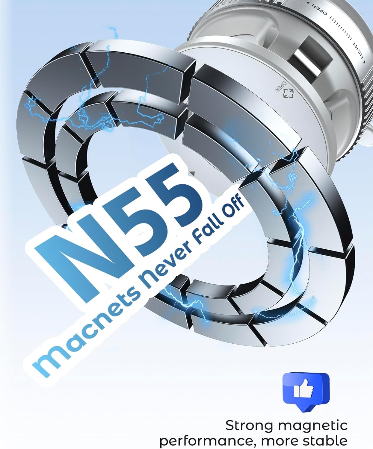 Strong Magnetic Phone Stand - Jononser foldable portable vacuum magnetic cell phone holder is equipped with a powerful circular N52 magnet, The powerful magnetic force of 2400 GF has undergone 8000 vibration tests and extreme road condition simulations, allowing you to drive on bumpy roads, sharp turns, and even sudden braking without worrying about your phone falling off.