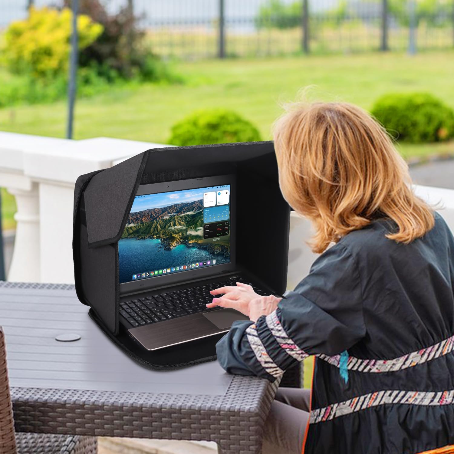 Yumt Laptop Sun Shade, Laptop Sun Glare Shield Privacy Screen Hood Computer Sunshade Bag for Working Outside Outdoor Folda...