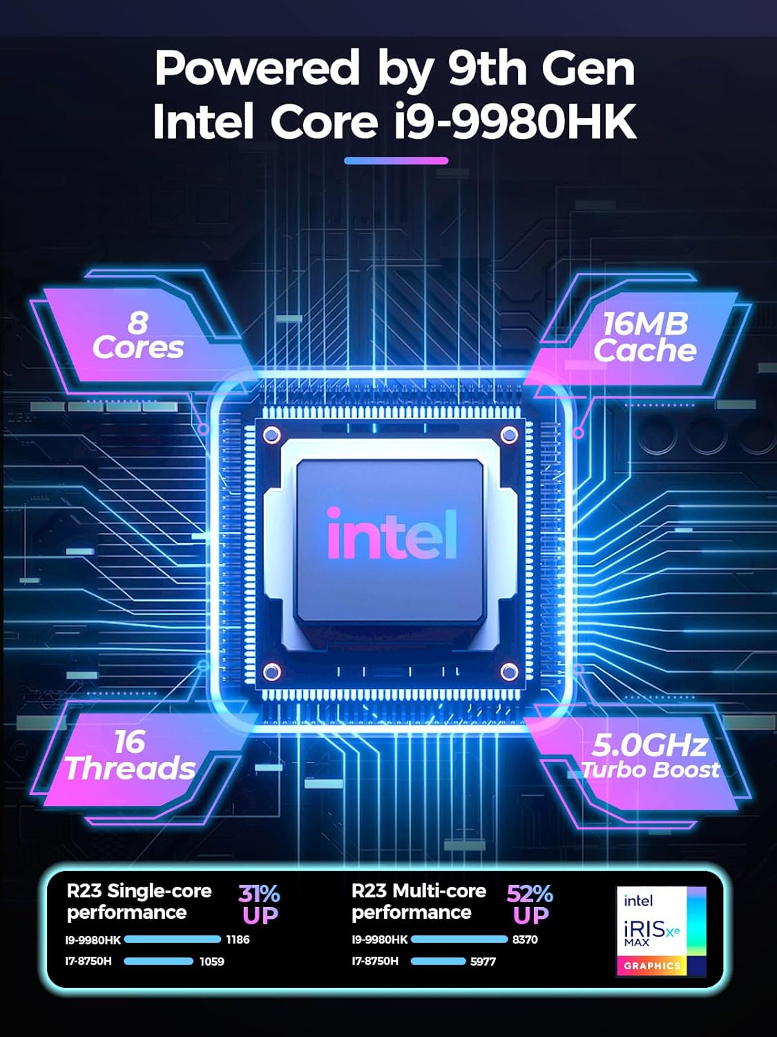 【Powerful Performance】Equipped with an Core i9-9980HK processor, this laptop delivers exceptional processing power for multitasking, demanding applications, and high-performance tasks.