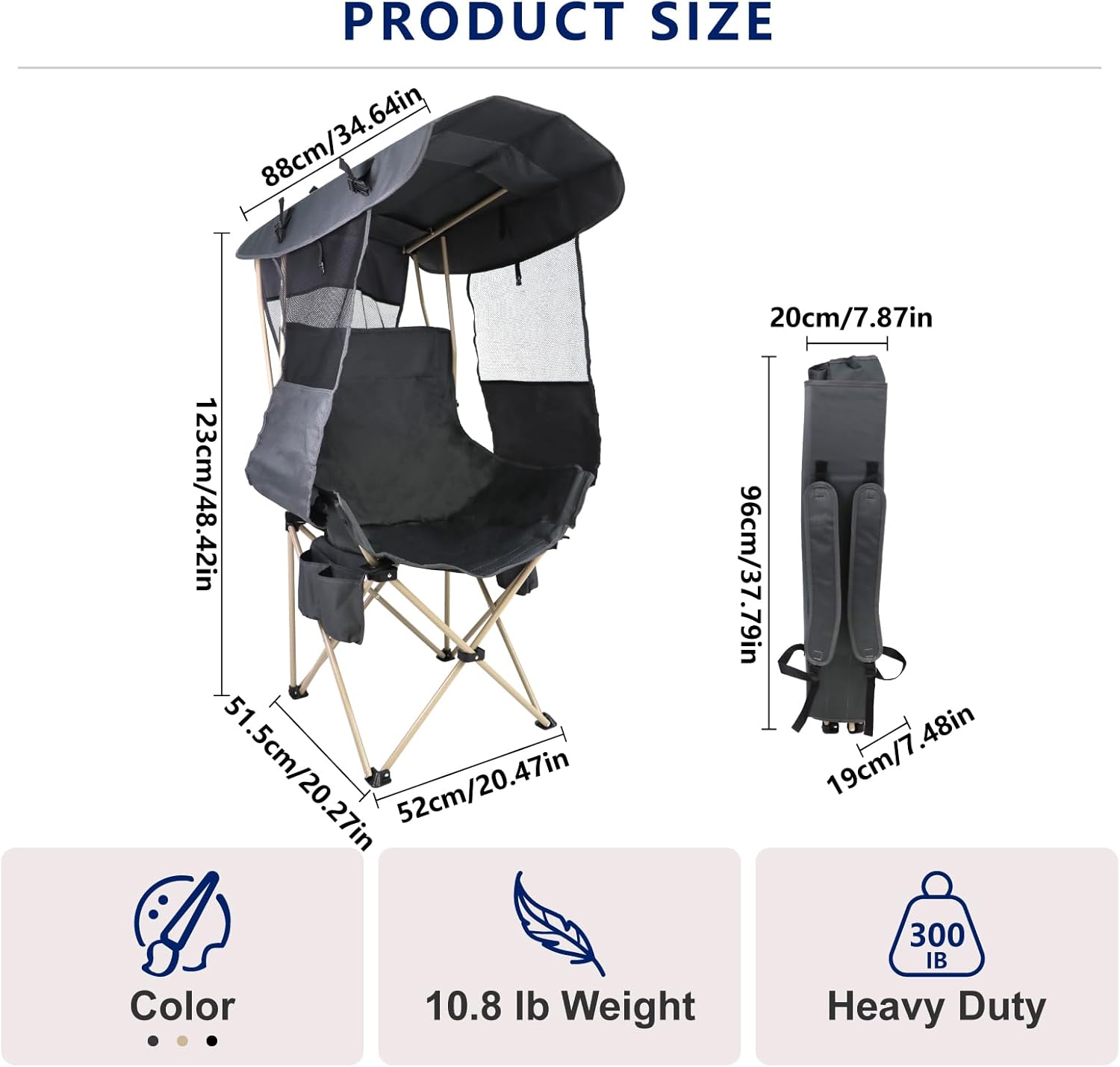 MAXIMUM SUN PROTECTION : Unlike traditional canopy chairs, this innovative design features side shades and a back flap, providing 360° sun protection to keep you cool and shaded from all angles