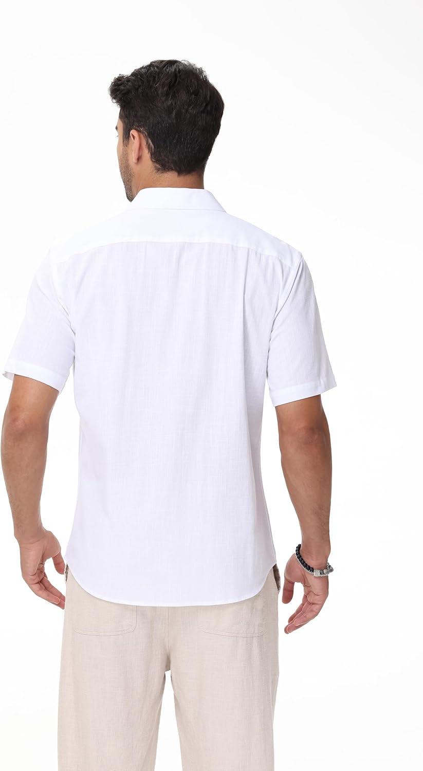 【Comfortable material】This mens short sleeve linen shirts is made from high quality cotton-linen fabric. It is lightweight, breathable, soft, allowing you to enjoy coolness and comfort anytime, anywhere. It's a must-have item for men in the summer.