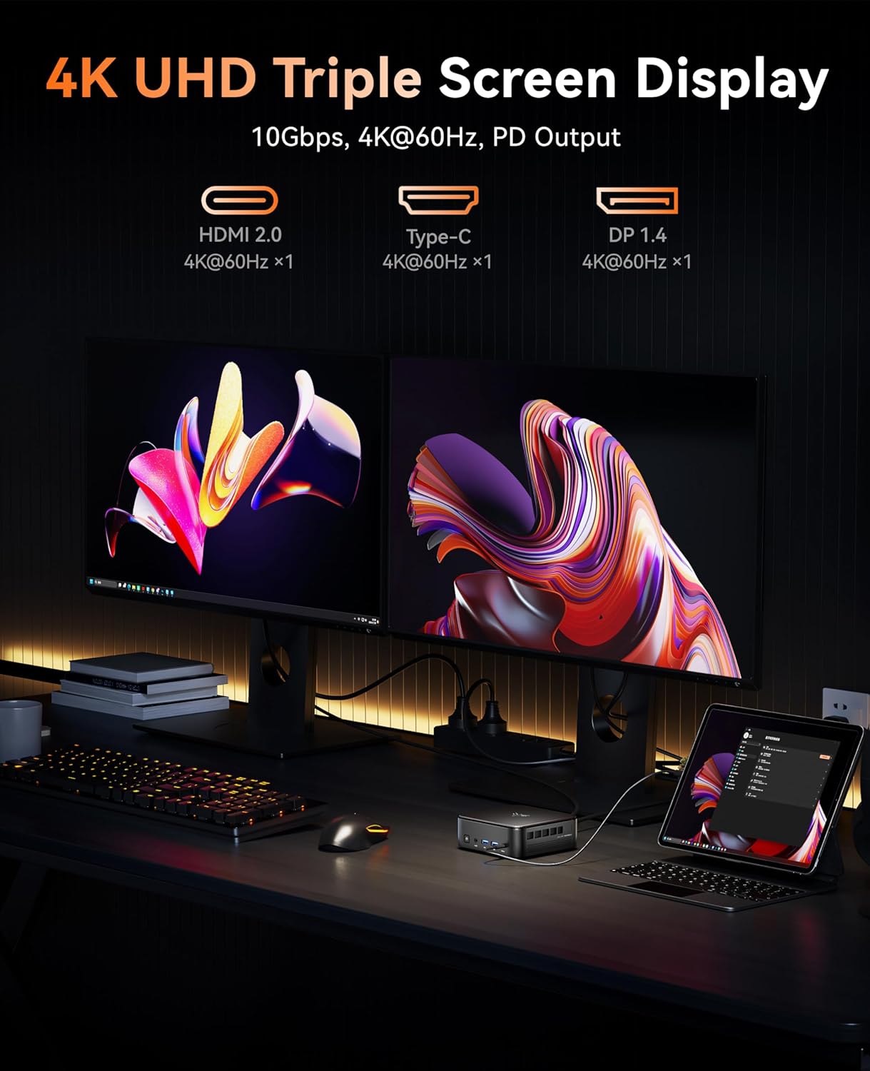 【Unique design】KAMRUI mini gaming computers has a compact size of only 13.2x13.2x5cm, The KAMRUI gaming desktop computer boasts a versatile array of interfaces, including 2x USB3.2 Gen2 Type-A Port(10Gbps), 4x USB3.2 Gen1 Type-A Port(5Gbps), 1x USB3.2 Gen2 Type-C Port(supporting DP1.4, 4K@60Hz, 10Gbps data transfer, PD output), 1x HDMI 2.0, 1x DP 1.4b, 1x 1.0Gbps RJ45 Gigabit Ethernet Port, 1x 3.5mm audio jack, Sufficient interfaces for your full range of connectivity control. Network connectivity with Dual Band 2.4/5GHz WiFi and RJ45 Gigabit Ethernet Supported 1000Mb/2.5G allow you to no longer suffer delays or outages from now on.