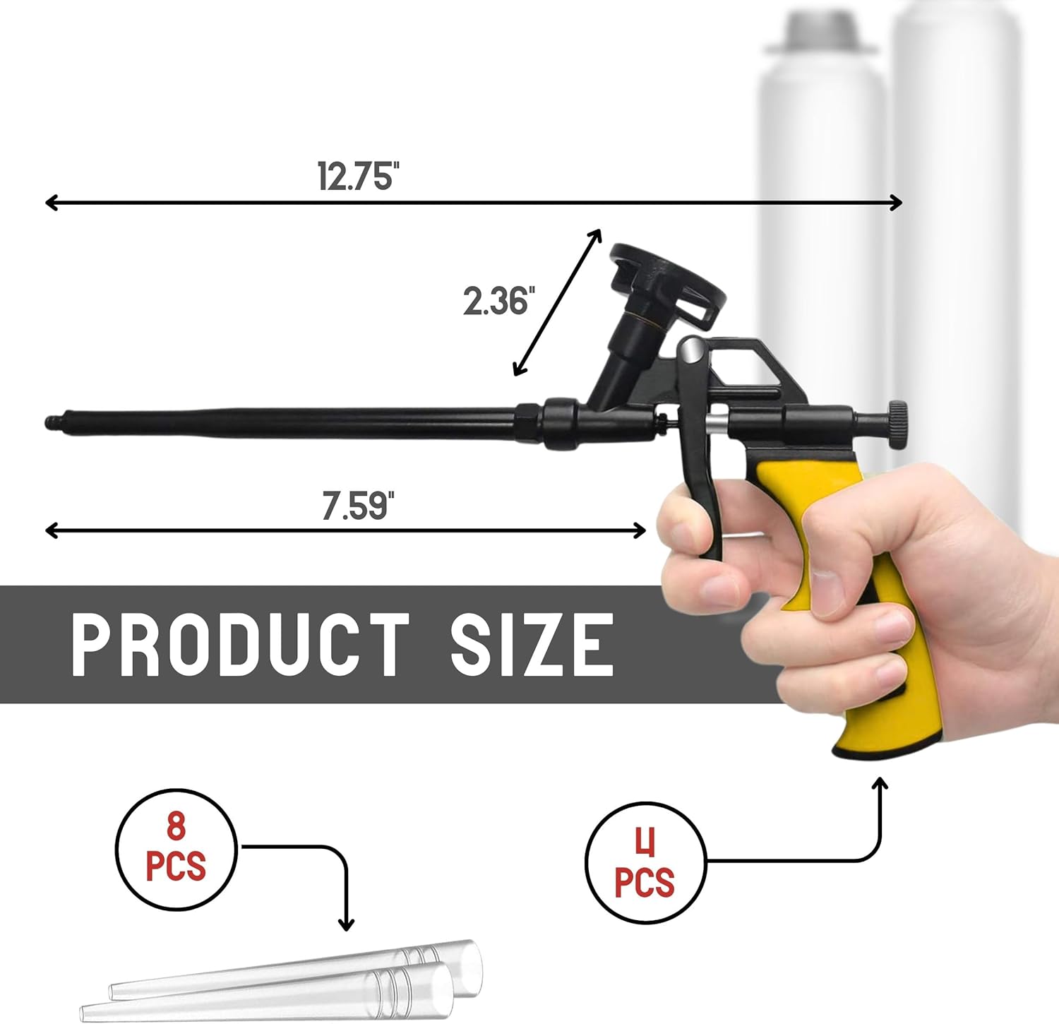 IDEAL FOR INSULATION PROJECTS: Equipped as a foam gun insulation. Perfect for sealing drafts and enhancing energy efficiency in your home or workspace. Get your set of 4 yellow foam gun insulation tools and transform your projects into a success!