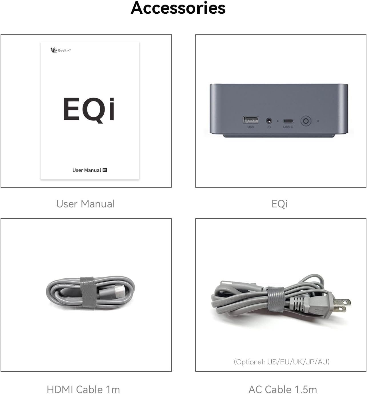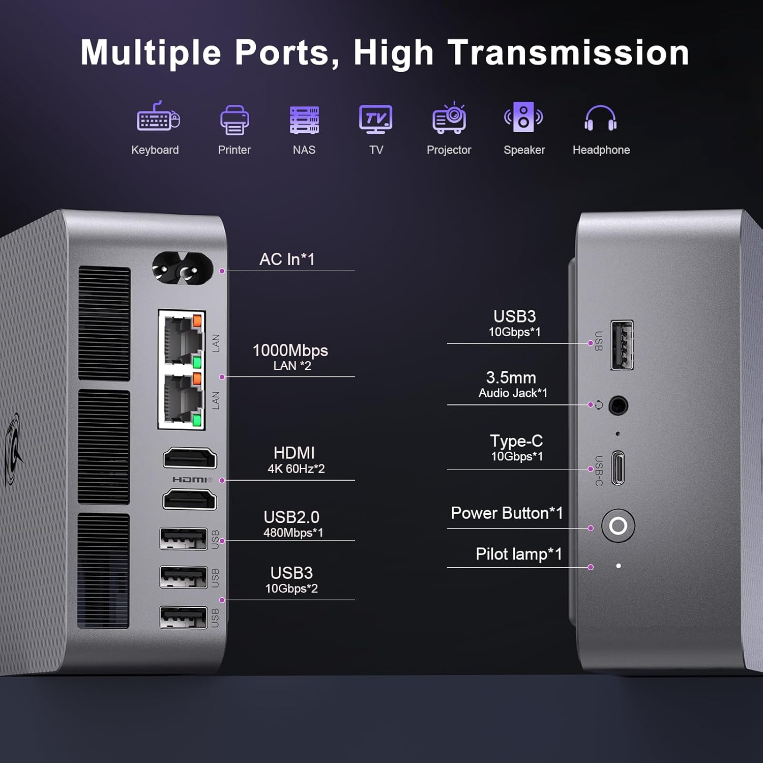 Meet Deeply Needs: Beelink EQi12 measures 4.9x4.9x1.7 inches, only 1/40 th size of standard desktop pc, it's convenient to bring it for flexible working. This mini desktop computer supports 4K 60Hz dual displays via two HDMI ports for efficient multi-tasking. 3 * USB3 and 1 * USB-C ports support data transmission up to 10Gbps, enabling transfer files in seconds. Beelink pc supports a wide range of OS, Wake On LAN and Auto Power On, a great to use as a server for media (Plex or FTP)