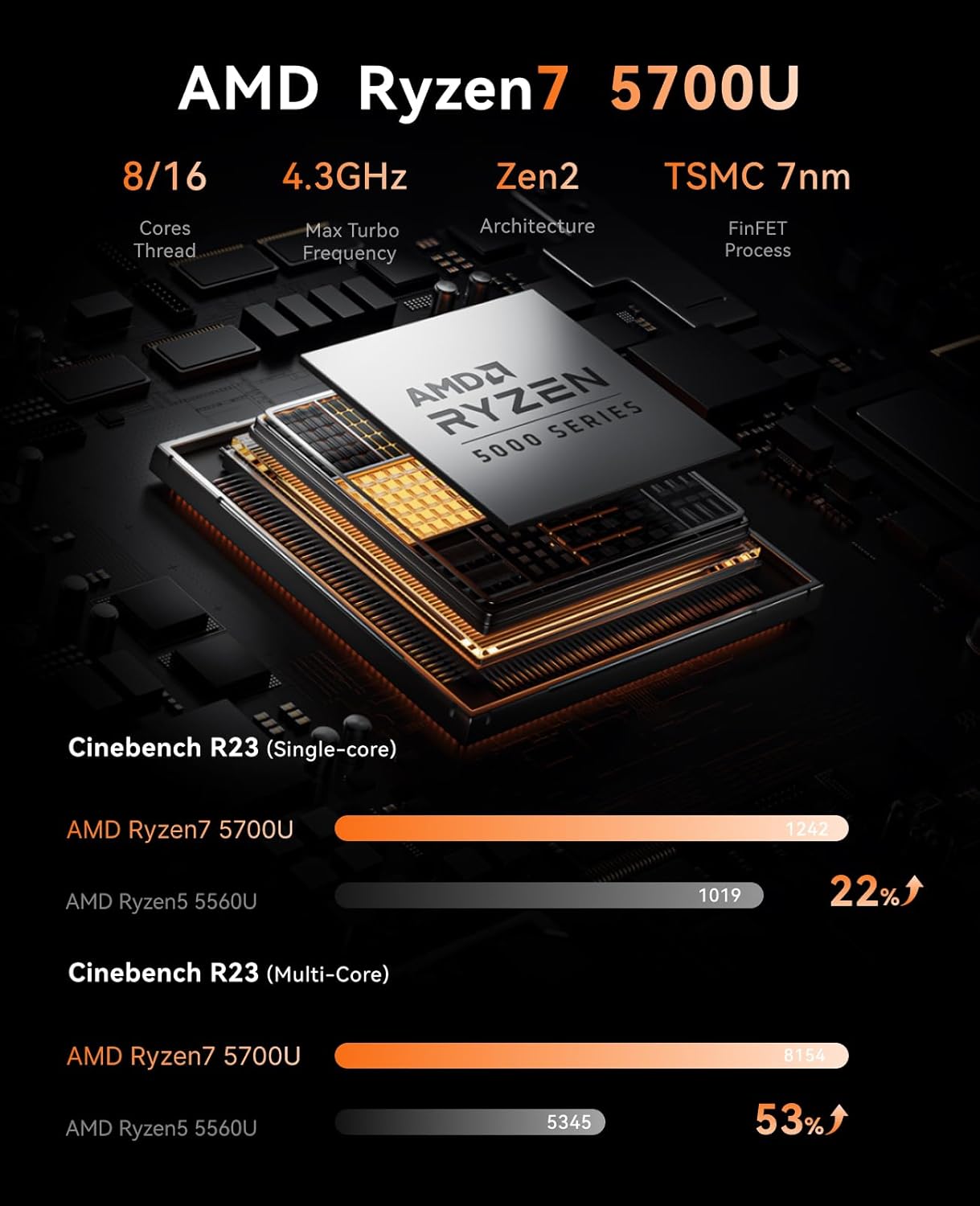 【Mini PC with Powerful AMD 5700U】The mini computers is equipped with a Ryzen R7 5700U (8C/16T, up to 4.3GHz) AMD processor, adopting 7nm photolithography technology and 16MB cache, the mini gaming pc can meet your different needs. Adopting 7nm FinFET processor technology, the default TDP is 15W (maximum 28W), meeting your daily office, leisure gaming, and home entertainment needs.