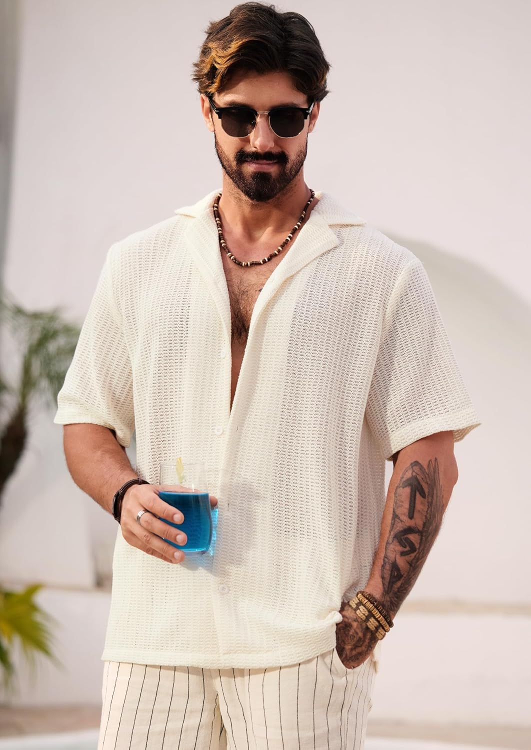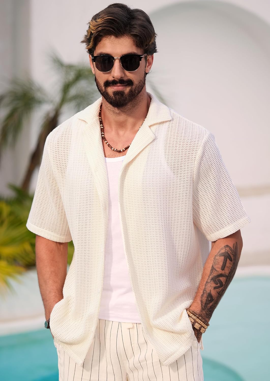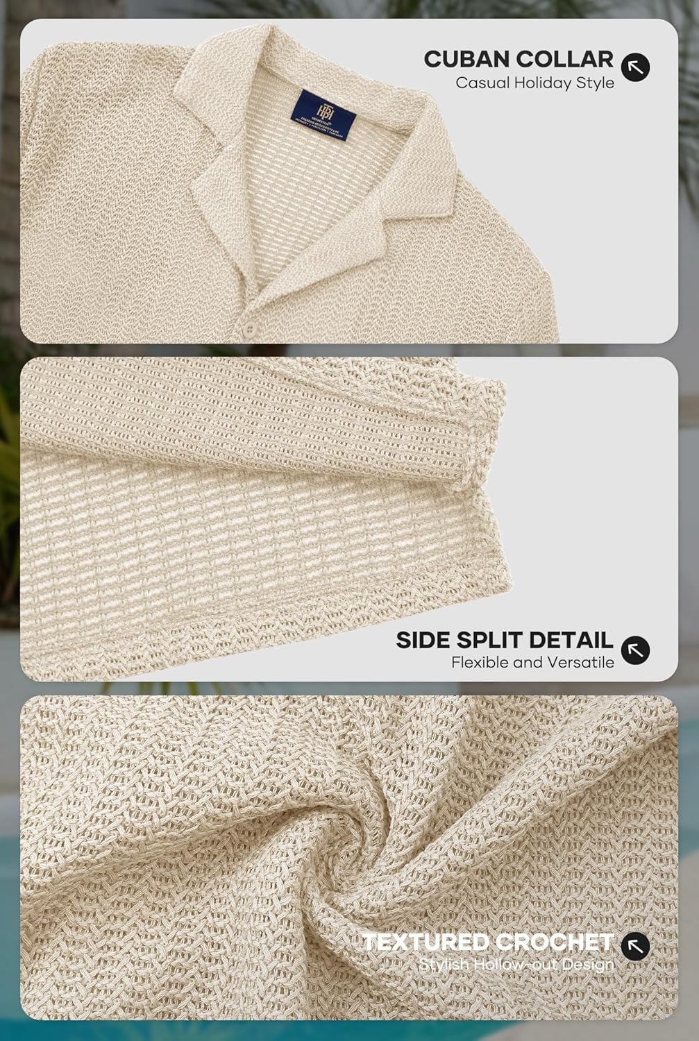 BEACH SHIRTS: Men's cuban shirts are always a hot weather favorite. The crochet hollow out design add a touch of sophistication, perfect for those who appreciate fashion that never goes out of style.