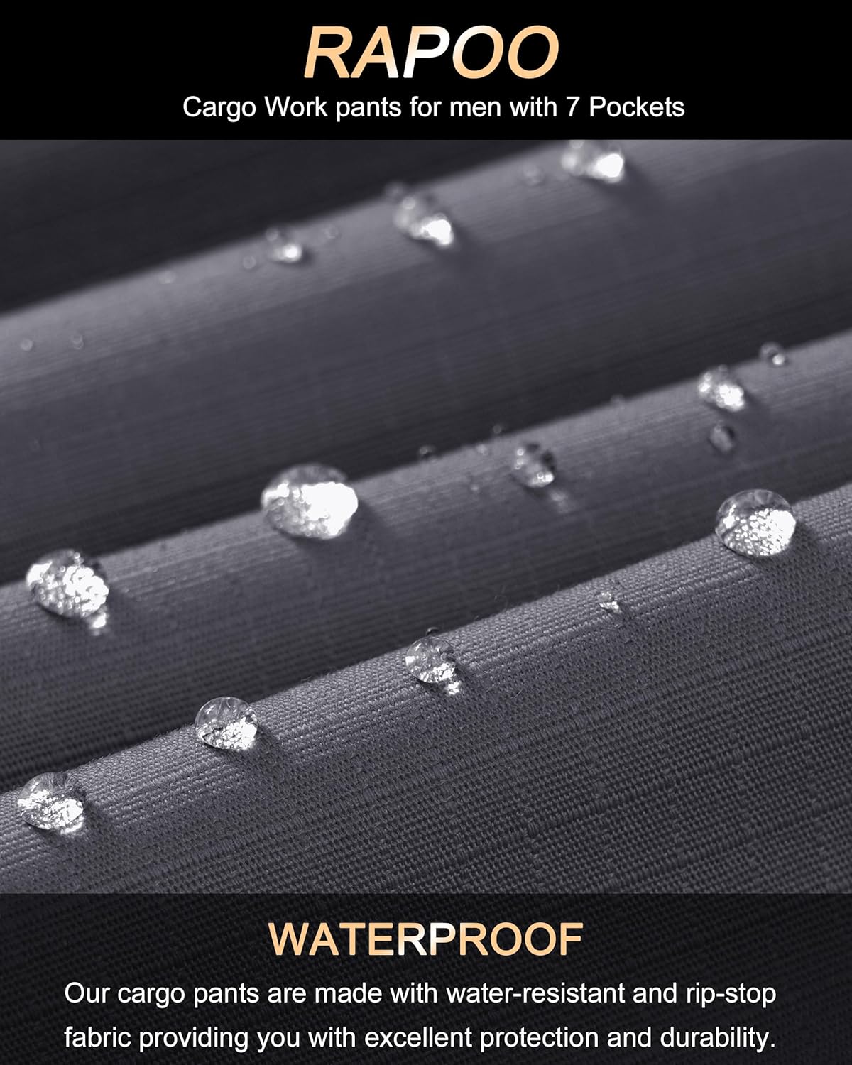 【Ripstop Fabric】--The Rapoo work pants are crafted from ripstop fabric that has undergone an excellent water-repellent treatment, keeping you dry all day long. They are designed to be breathable, scratch-resistant, durable, water-resistant, comfortable, flexible, and resistant to wrinkles and fading.