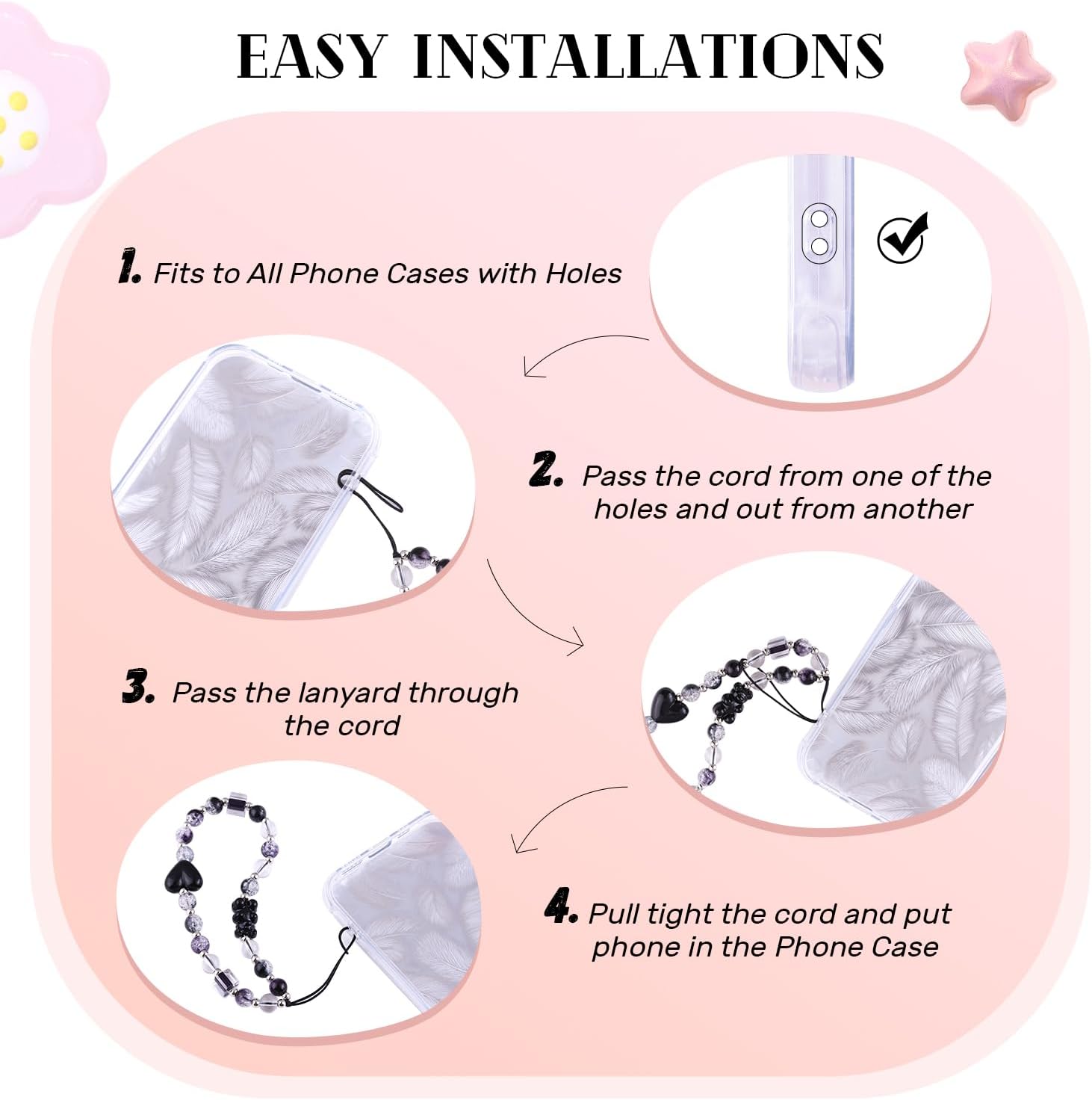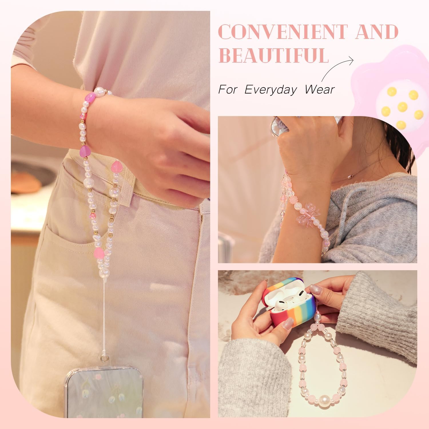 Multi-Functional -- They improve your phone’s grip, reducing the risk of accidental drops. Hanging phone with phone charms can free your hands when you are riding,walking or need to pick up something else etc. ensuring your phone stays safe and stylish