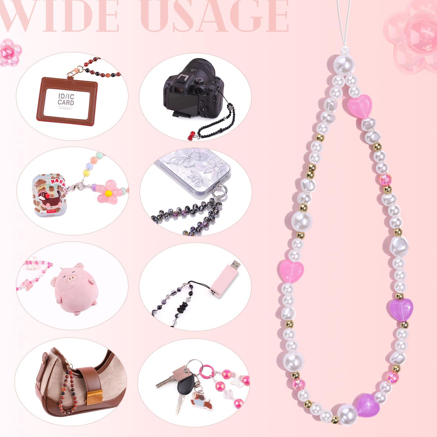 Wide Application -- You can not only use these cute charms as hand wrist strap,but also can decorate your keychains,bags,purse,camera,airpods,transit cards and so on,offer a unique way to personalize your device