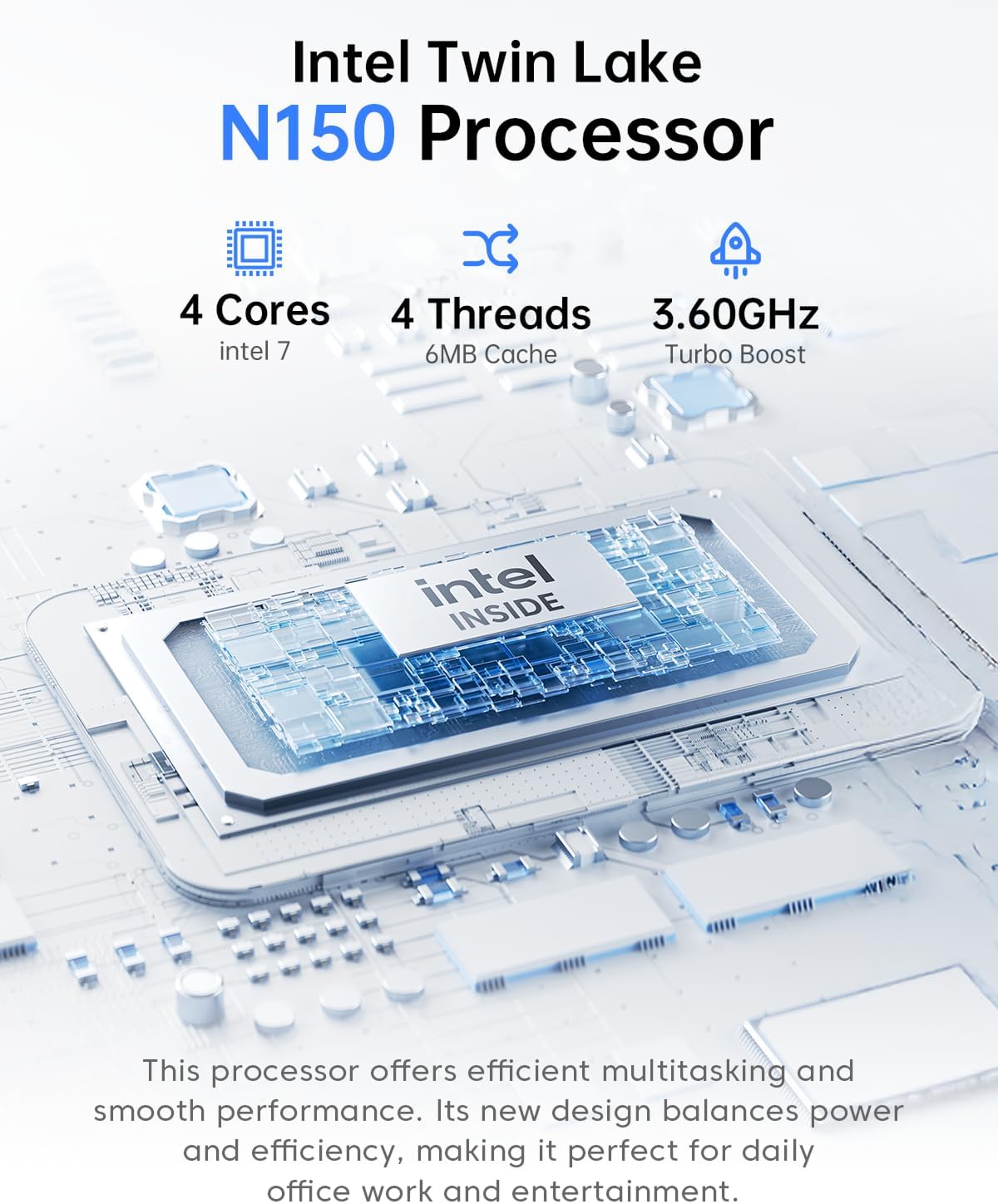 【POWERFUL 13TH GEN INTEL N150 PROCESSOR】The ACEMAGIC Vista V1 N150 Mini PC equipped with the latest 13th Gen Intel N150 processor, up to 3.6GHz turbo boost, offering 30% faster performance than previous generations. With low power consumption (6W default, 15W max), it's perfect for streaming, office tasks, and light photo editing.