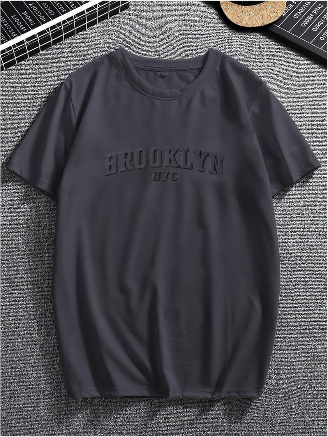 Letter embossed, drop shoulder, short sleeve, round neck, casual t shirt for men, brings out your charming