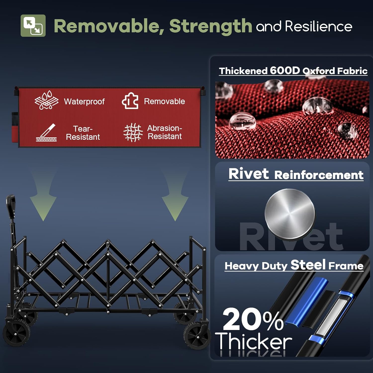【??" ????? ???? ??????????? ????? ???? ???? ????????】: Featuring a patented design, this wagon is 50% longer than standard wagons. Its spacious interior easily accommodates long items like folded tents. Despite its large capacity, it weighs only 14 lbs, making it 40% lighter than other wagons! You can carry this portable wagon effortlessly.