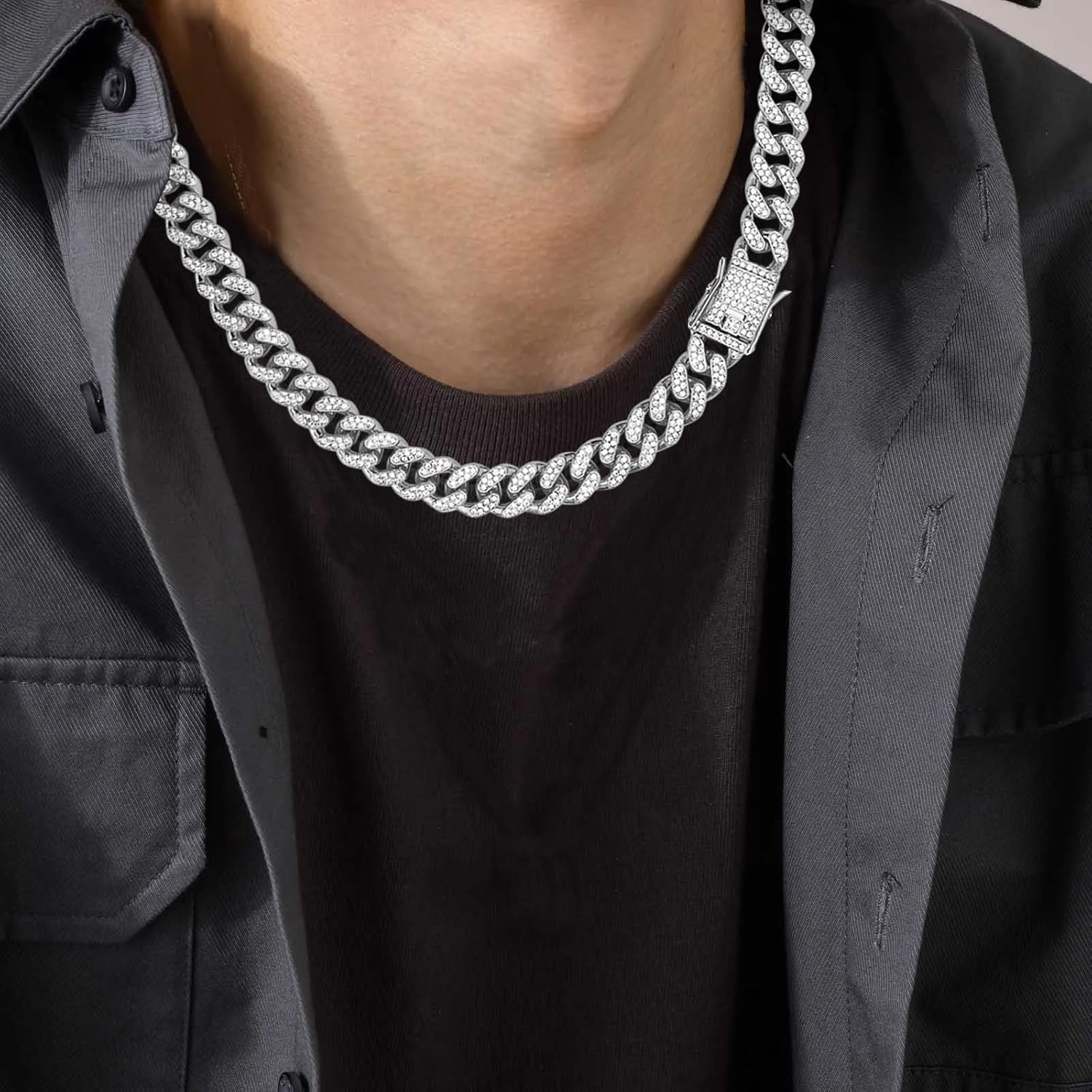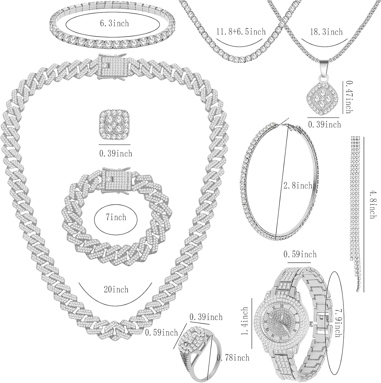 NEWITIN 13 Pieces Silver Jewelry Set for Women Stainless Steel Cuban Link Necklaces Bracelets Earrings Watch Ring Bling Cu...