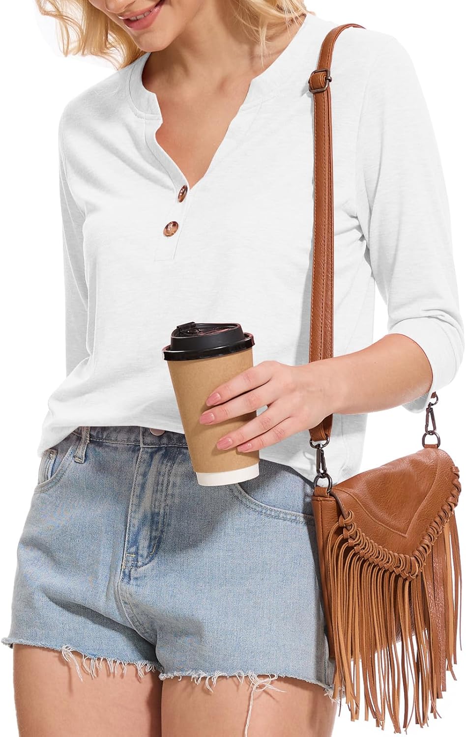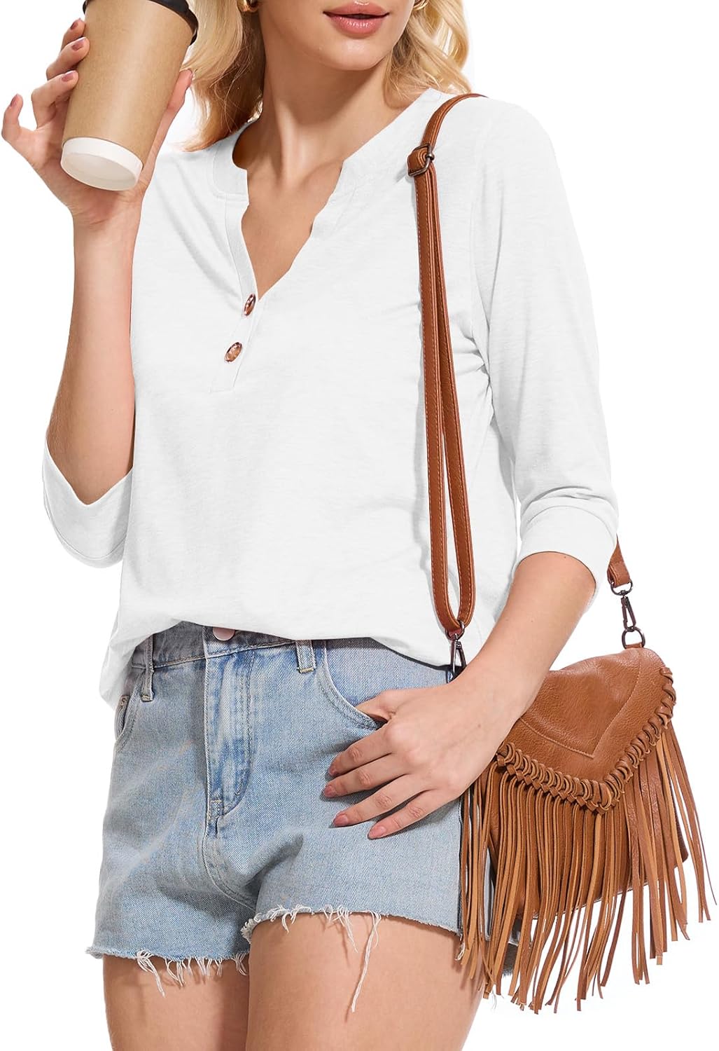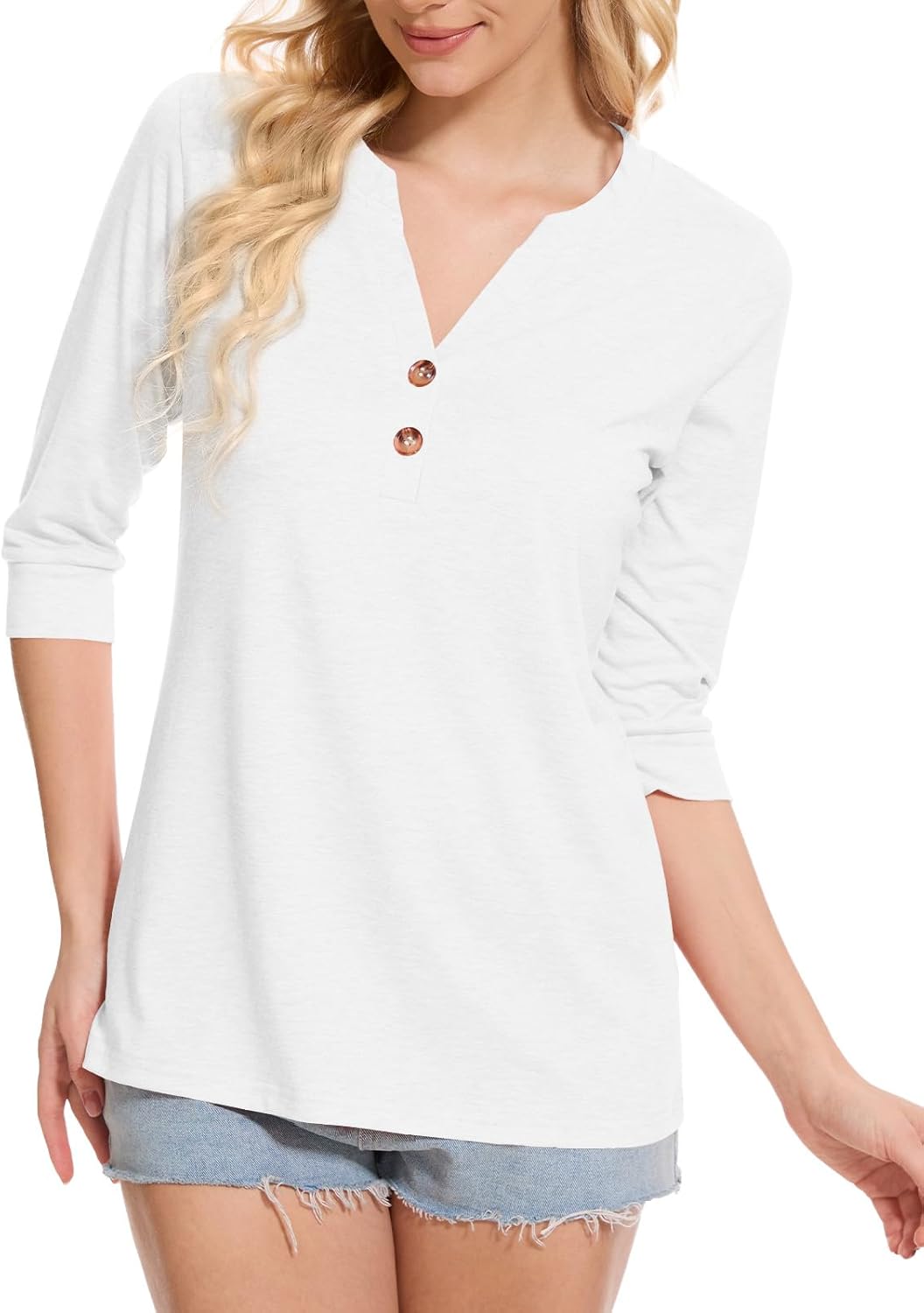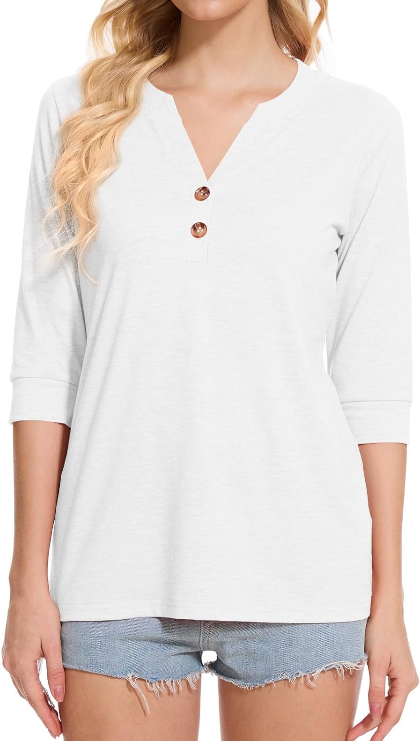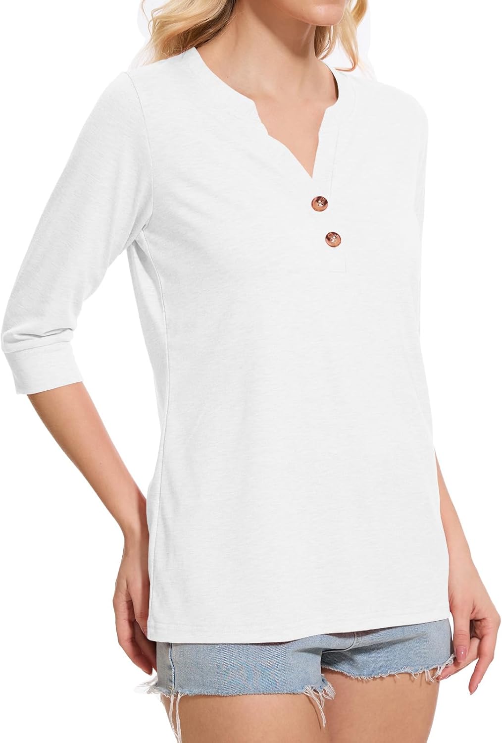Features: This womens tops features a button-down neck, 3/4 sleeves, and a loose fit, offering a trendy and elegant look