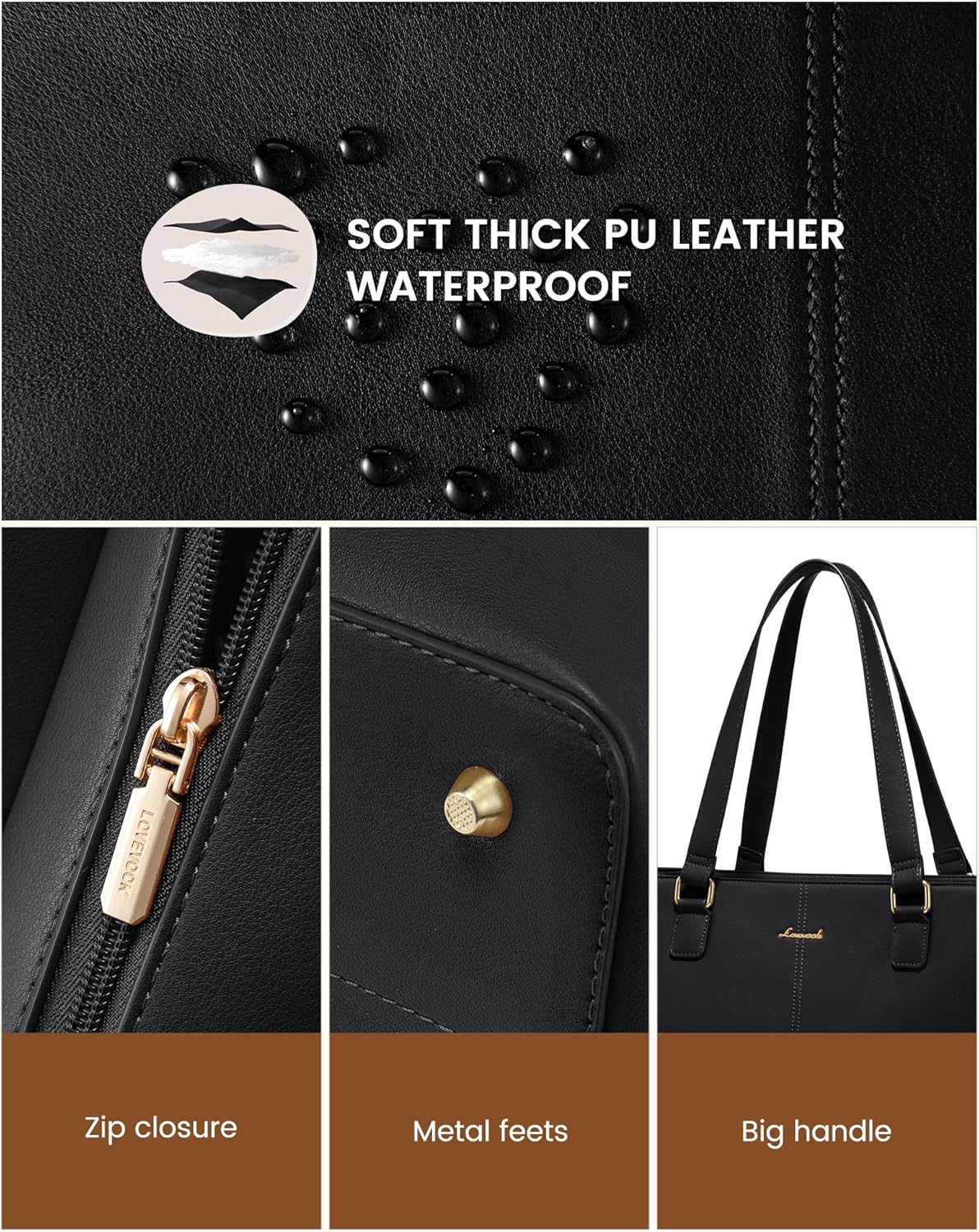 【Waterproof & Professional Laptop Bag】This premium laptop bag for women is crafted from waterproof, scratch-resistant PU leather, lined with polyester. Its sleek metal zipper allows for easy access, while the reinforced metal feet protect the bag from wear and tear, keeping it in pristine condition. Perfect for both work and business settings.