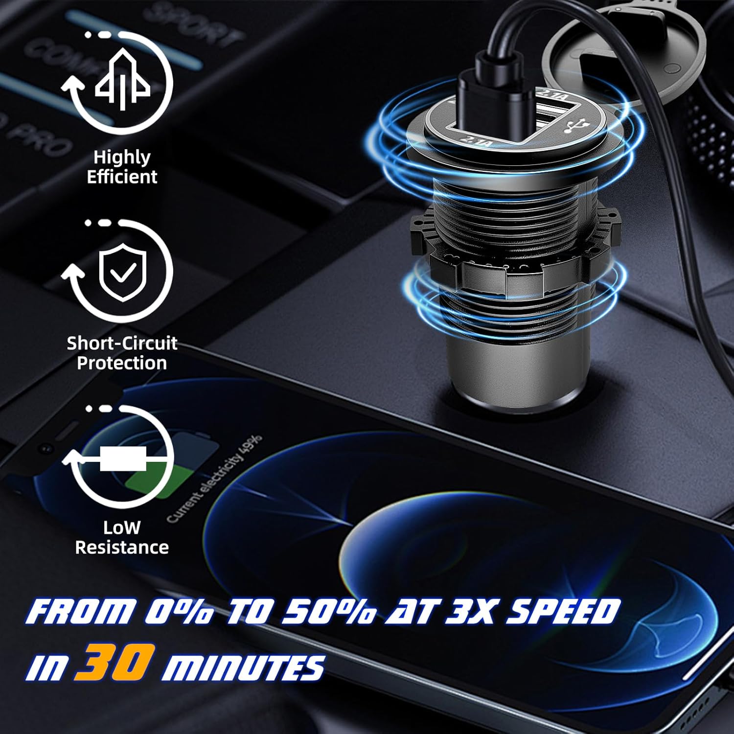 Blue LED Indicator: The built-in blue LED light makes it easy to find the charging ports in low-light environments and visually confirms when the connection is successful.