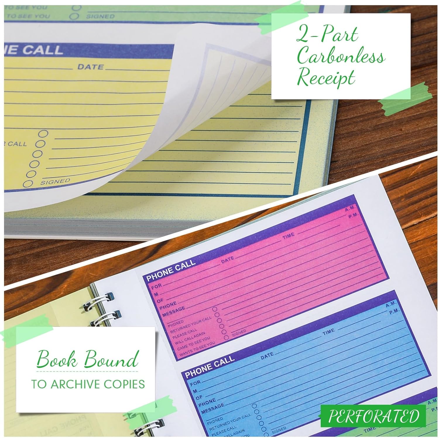 Spiral Design: due to the spiral binding of the message pads for phone calls, you could easily to turn pages and find specific call information; Even if you tear out a single page, the rest of the paper remains intact, making it much easier to use