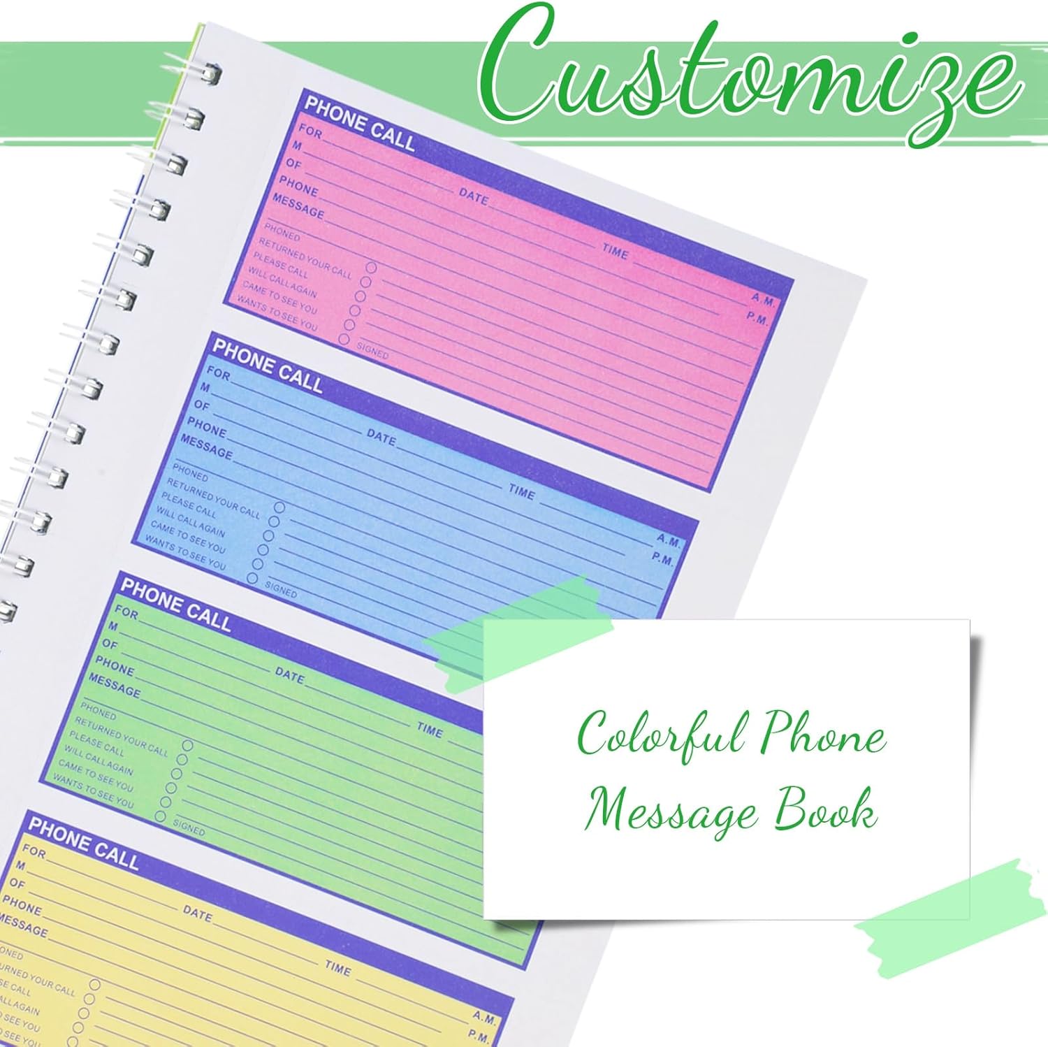Package Includes: 1 phone message book with 4 colors, each book containing 4 messages on a page, ideal for your daily and replacement needs, you can also share with others