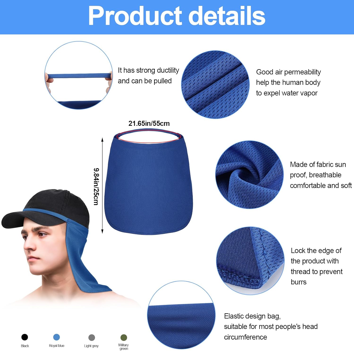 Soft and comfortable: the sun protection neck cover made of quality fabric, which has soft and smooth touch, light, elastic and breathable; The neck cover can cool down in a short time, bring cool feeling to skin in hot weather, and provide you with a comfortable wearing experience