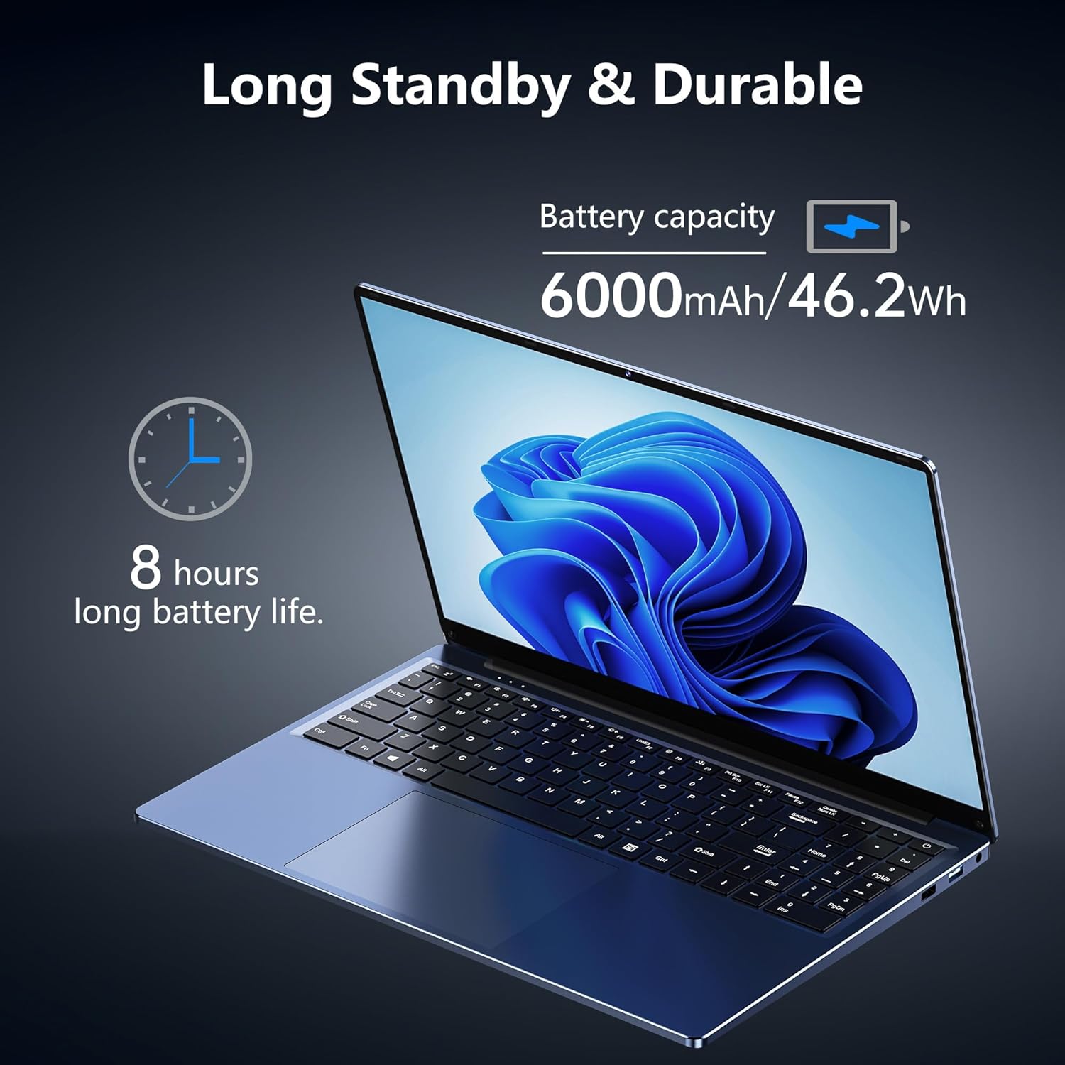 [Long Battery Life and Convenience]:This 16 inch laptop computer is equipped with a 6000mAH Battery rechargeable battery with up to 8 hours of battery life, making it easy to save power for a long time. And at only 0.8 Inch slim body, 3.5pounds weight, this thin and lightweight laptop is portable to carry.