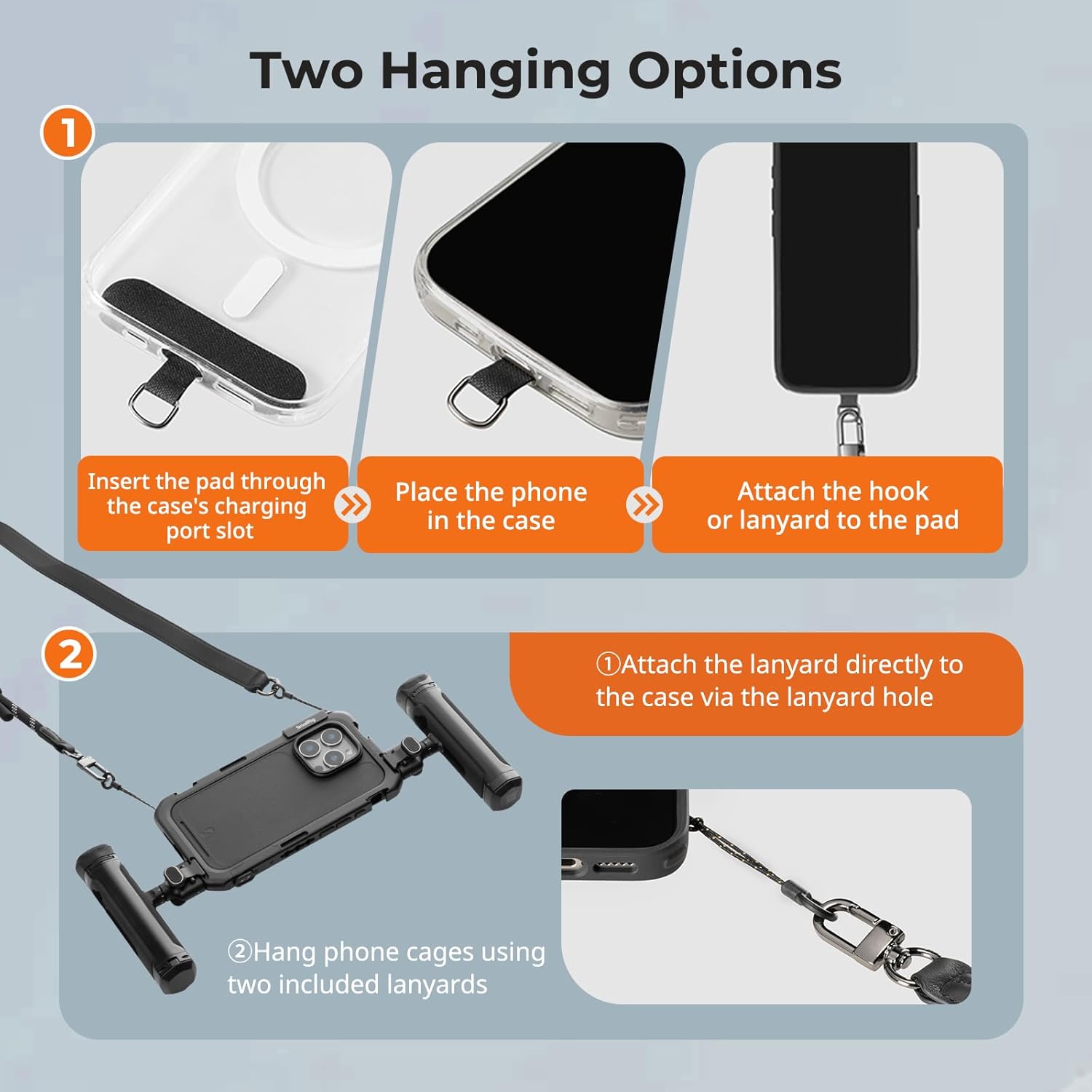 2-in-1 Versatility: The package includes two lanyards and a tether pad for flexible mounting options. Use one strap for your phone, or combine both to hang phone cages and accessories, offering you versatility and convenience in your daily routine.