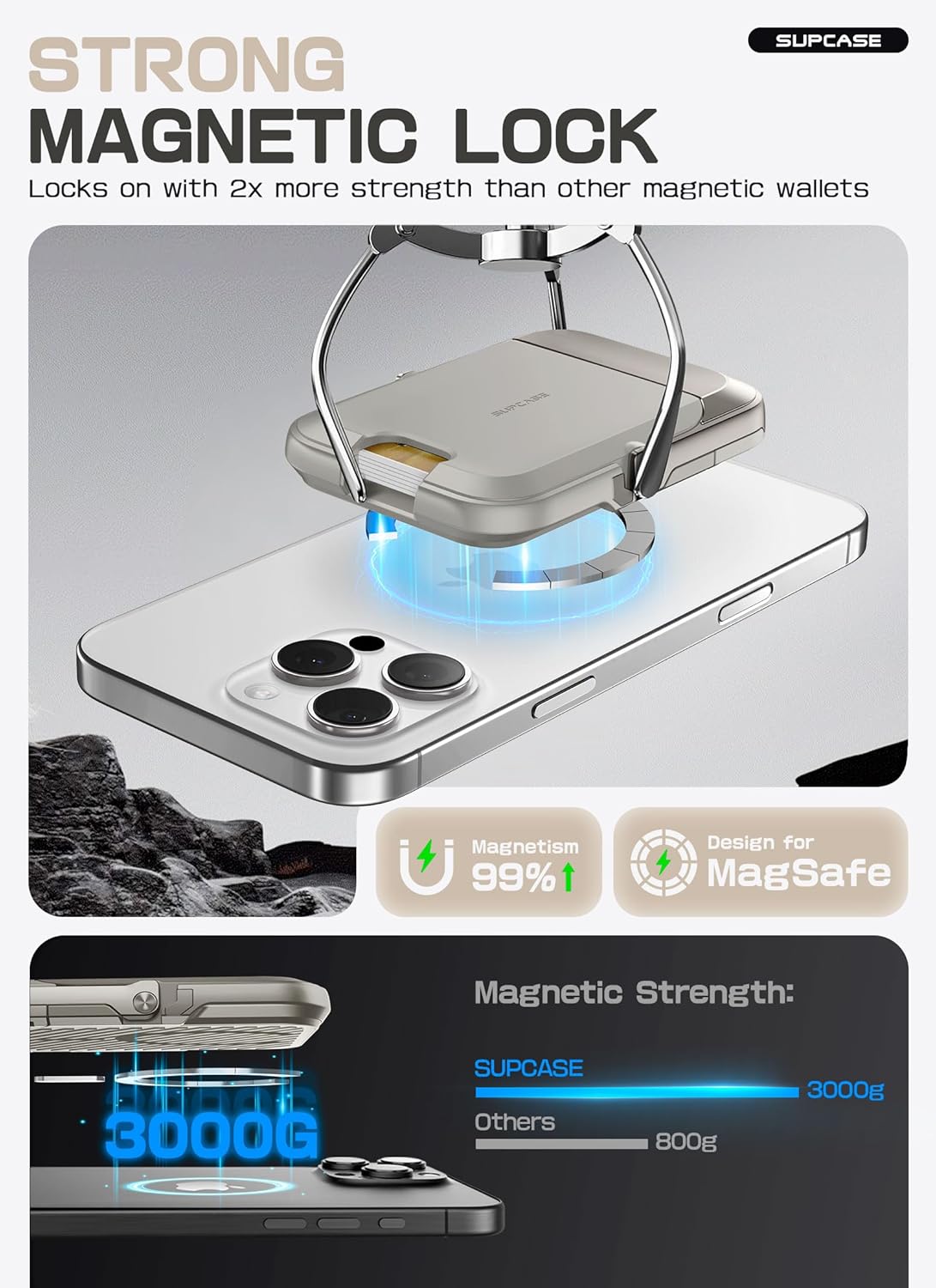 [Strong Magnetic Lock]:Built-in magnets, offering a magnetic force of up to 3000g. Ensures the magnetic wallet fits tightly and attaches securely to the back of your iPhone.