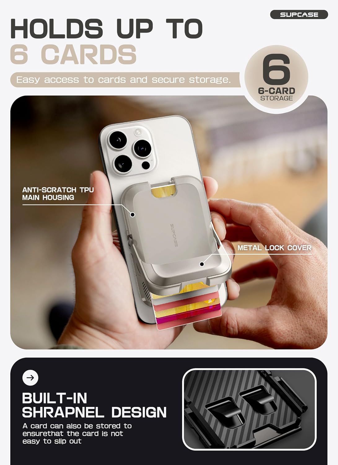 [6-Card Storage]:The magnetic wallet is designed ingeniously to hold 6 cards, allow easy access to your cards. The built-in spring design to prevent cards from slipping out.