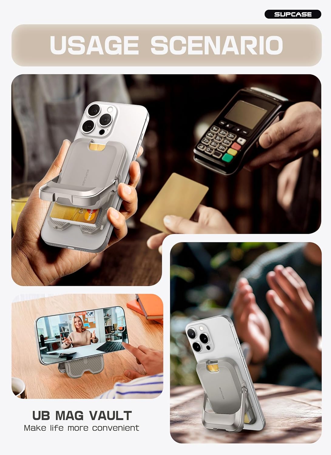 [Functional Stand]: Built-in stand supports the phone for horizontal and vertical viewing, especially suitable for watching videos or FaceTime calls, freeing your hands.