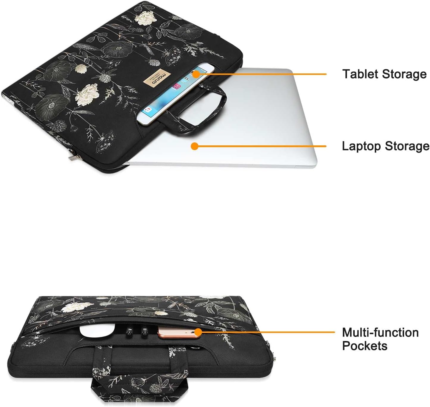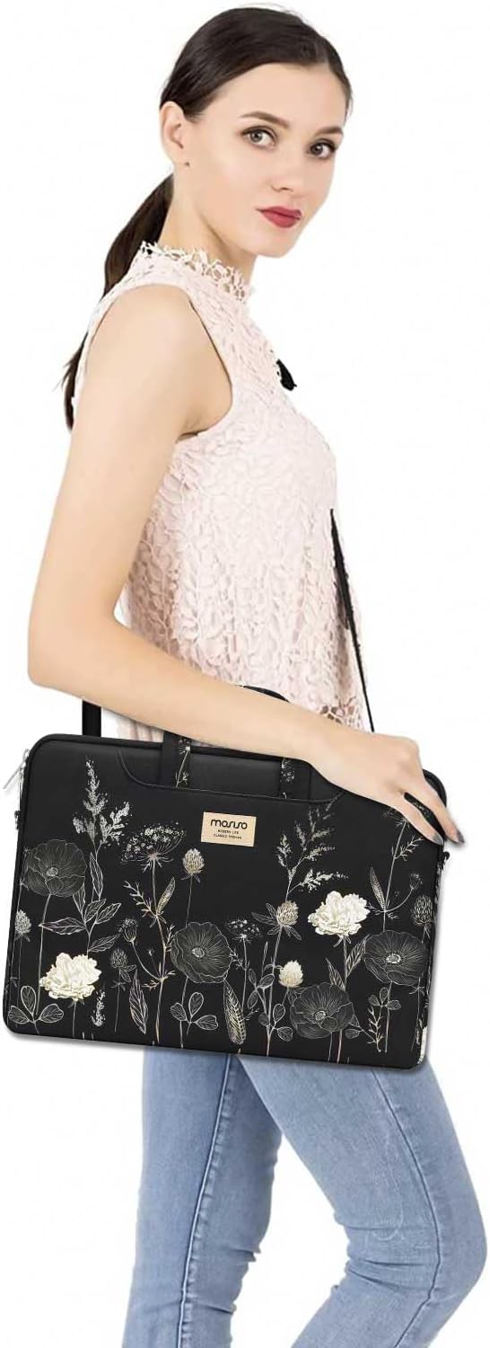Outer retro flower enables you to carry your laptop / notebook / Ultrabook computer in a uniquely sleek style. This protective laptop shoulder bag carrying case cover with pocket is ideal for you to take your laptop out.