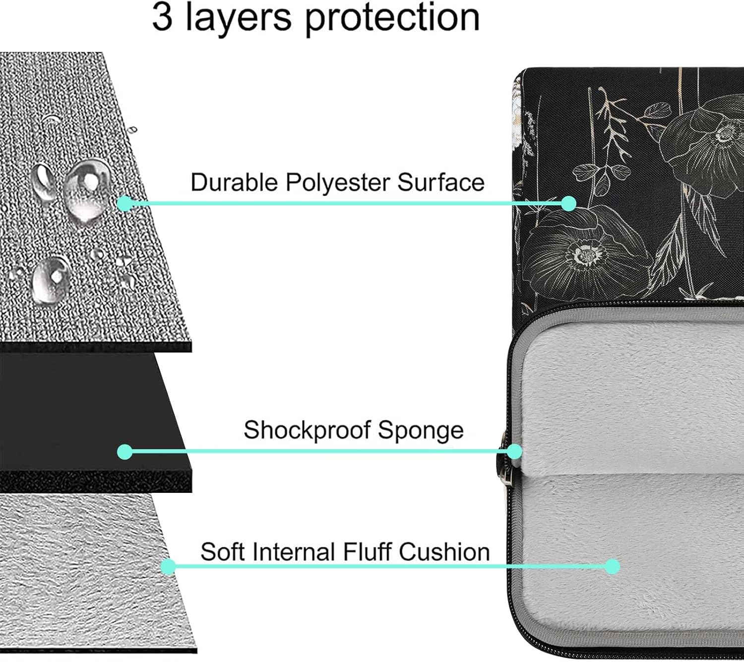 Features foam padding layer and fluffy fleece fabric lining for bump and shock absorption and protection of your computer from accidental scratches. Top-loading double zippers on the bag glide smoothly and allows convenient access to your laptop computer.