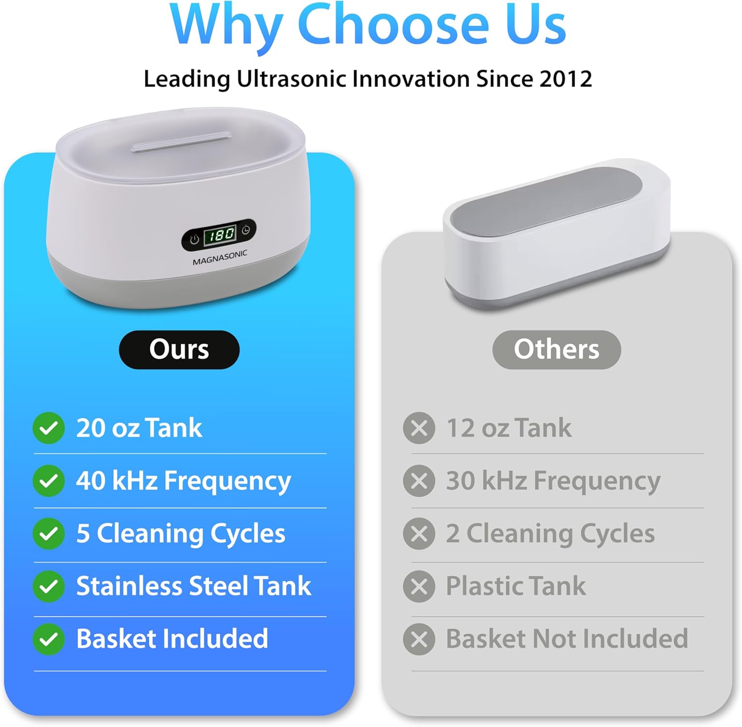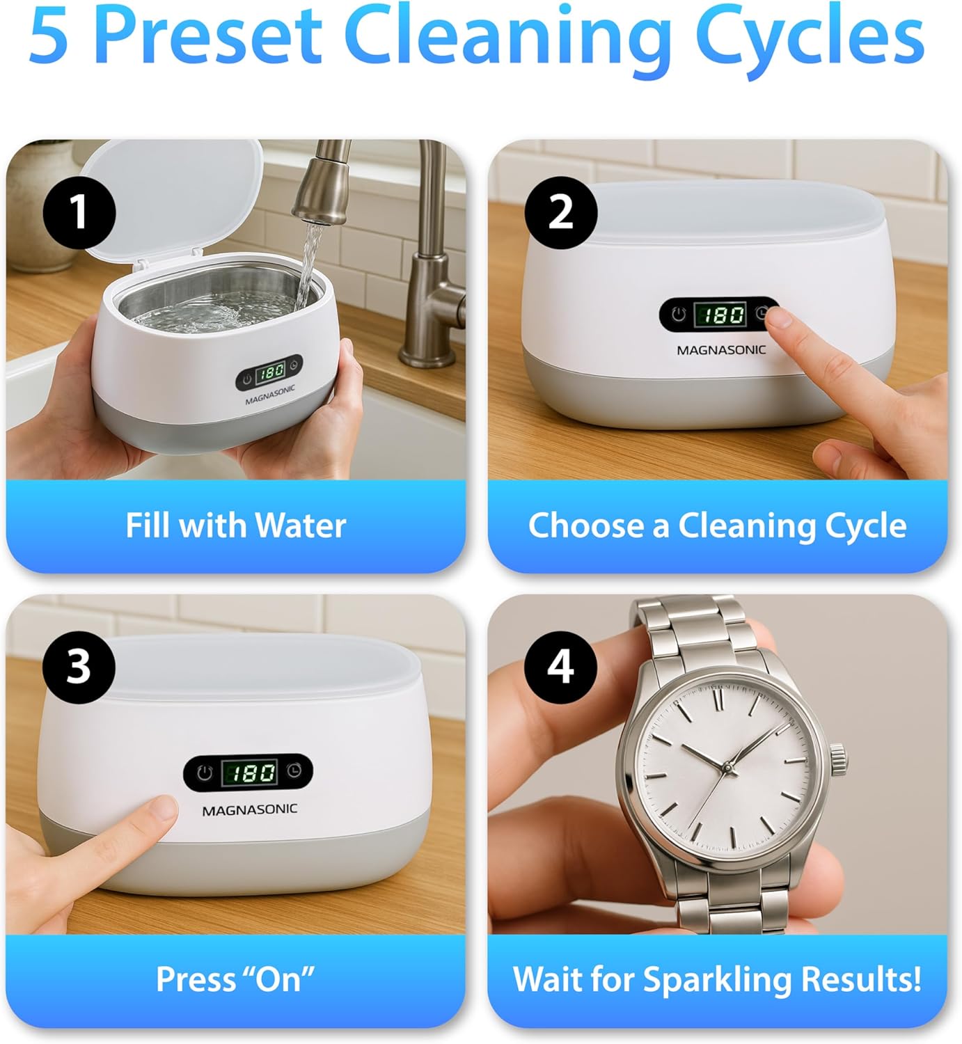 Magnasonic Ultrasonic Cleaner, 20oz Stainless Steel Tank, Digital Timer, 5 Cleaning Modes, Ultrasonic Jewelry Cleaner for ...